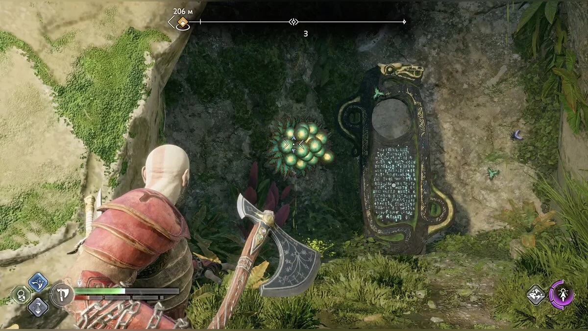 Новое семечко Древа, которое выдаст Рататоск после финала истории, откроет доступ к жилищу Ангрбоды. Изучите локацию — цветок рядом со спуском, где Атрей и девушка упали, катаясь на ездовом животном. Зона для исследования сильно ограничена, поэтому растение вы не пропустите. Бонусом можете пообщаться с девушкой и погладить Фенрира.