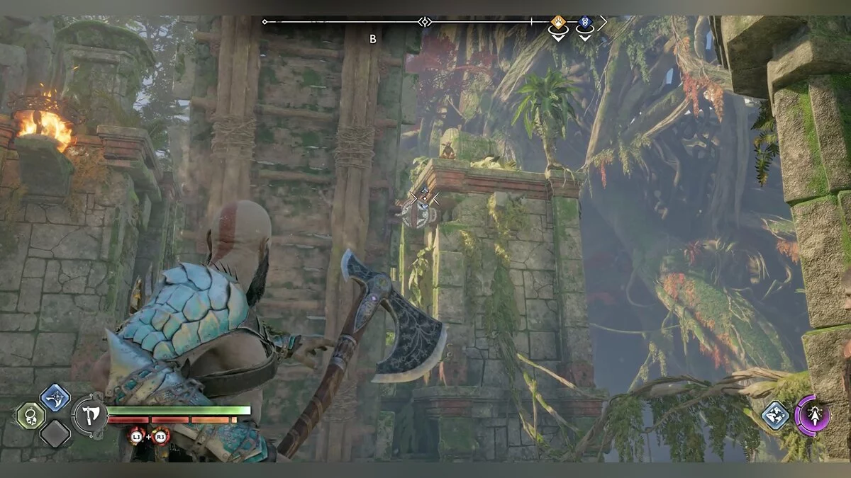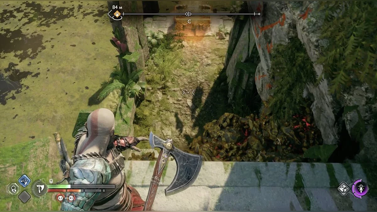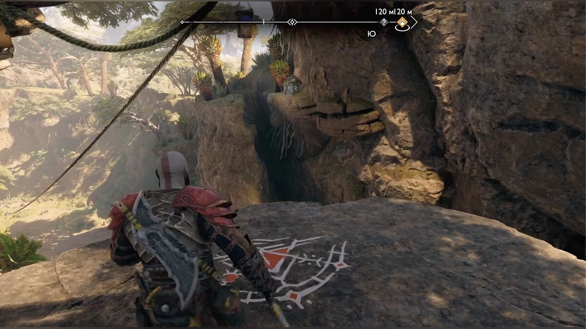 Первая нужна по сюжету, но на той же скале выше есть еще одно место, откуда идет пар. Забравшись выше, вы заметите, что с помощью второй перекладины сможете перепрыгнуть на уступ с пространственным разрывом.