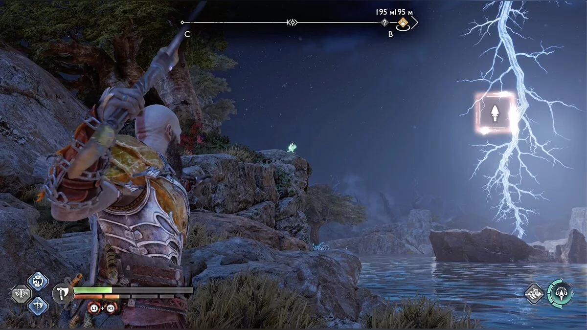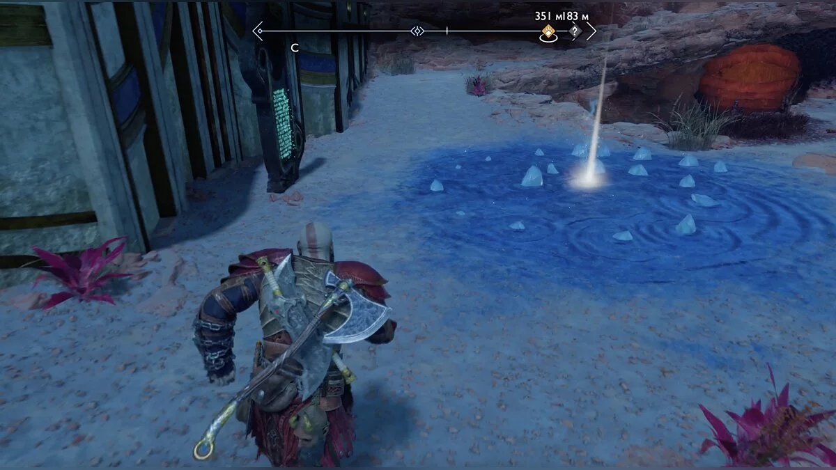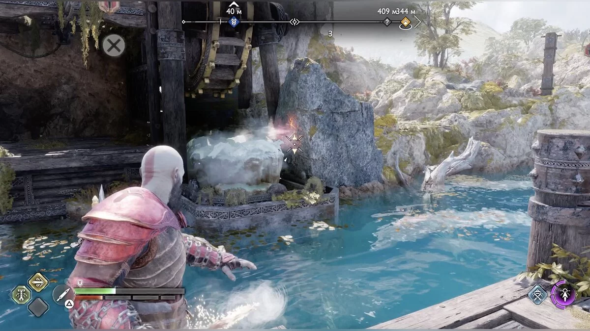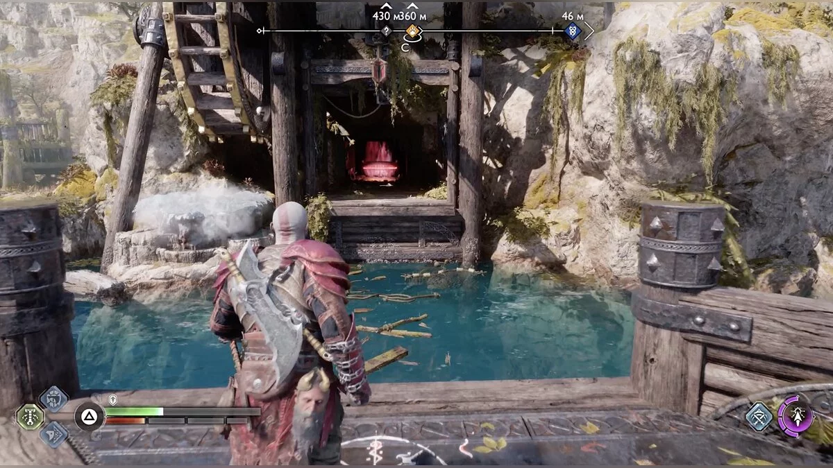 После прохождения сюжетного задания для получения копья перед вратами миров Кратоса и Фрейю остановит старый знакомый — гном Дурлин. Он просит вернуть его кузнечный молот. Учитывая, что с копьем можно открыть новые зоны, отправляемся в уже известную нам водную локацию.