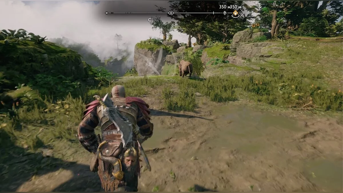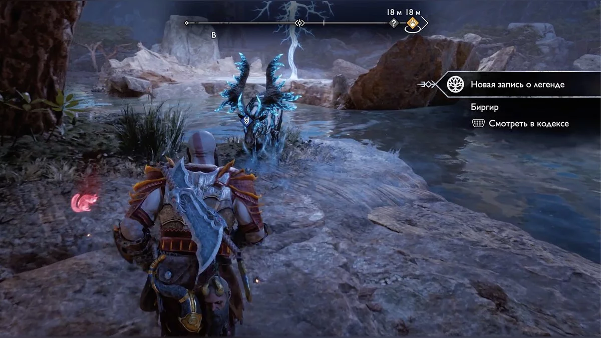 Задание появится автоматически. Когда выпустите реку и выйдете из Джунглей в основную локацию «Кратер», плывите налево. На берегу Мимир заметит, что впереди место кормежки монстра.