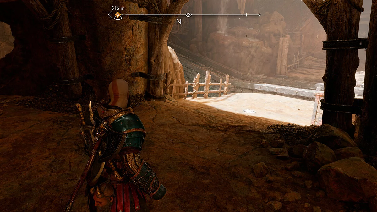 После задания «Ковка судьбы» вернитесь в Нидавеллир. Поверните на юго-восток от Мистических врат и пройдите через паб. Затем, преодолев мост, сверните налево и продолжайте идти до самого верха. Поднявшись, найдите место для копья и с его помощью заберитесь на уступ, — там вас будет ждать карта.