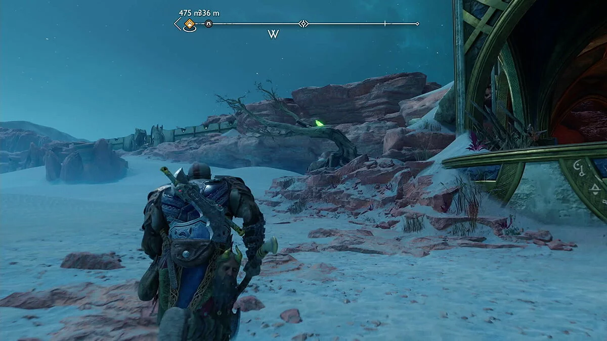 Первая зеленая птица в Свартальвхейме находится в болотах Аурвангара, почти сразу после того, как вы покинете Мистические врата. Двигайтесь влево, пока не дойдете до небольшого лагеря. Стоя лицом к лагерю, пройдите направо, и вы заметите птицу на вершине горы. Убейте её топором Левиафана.