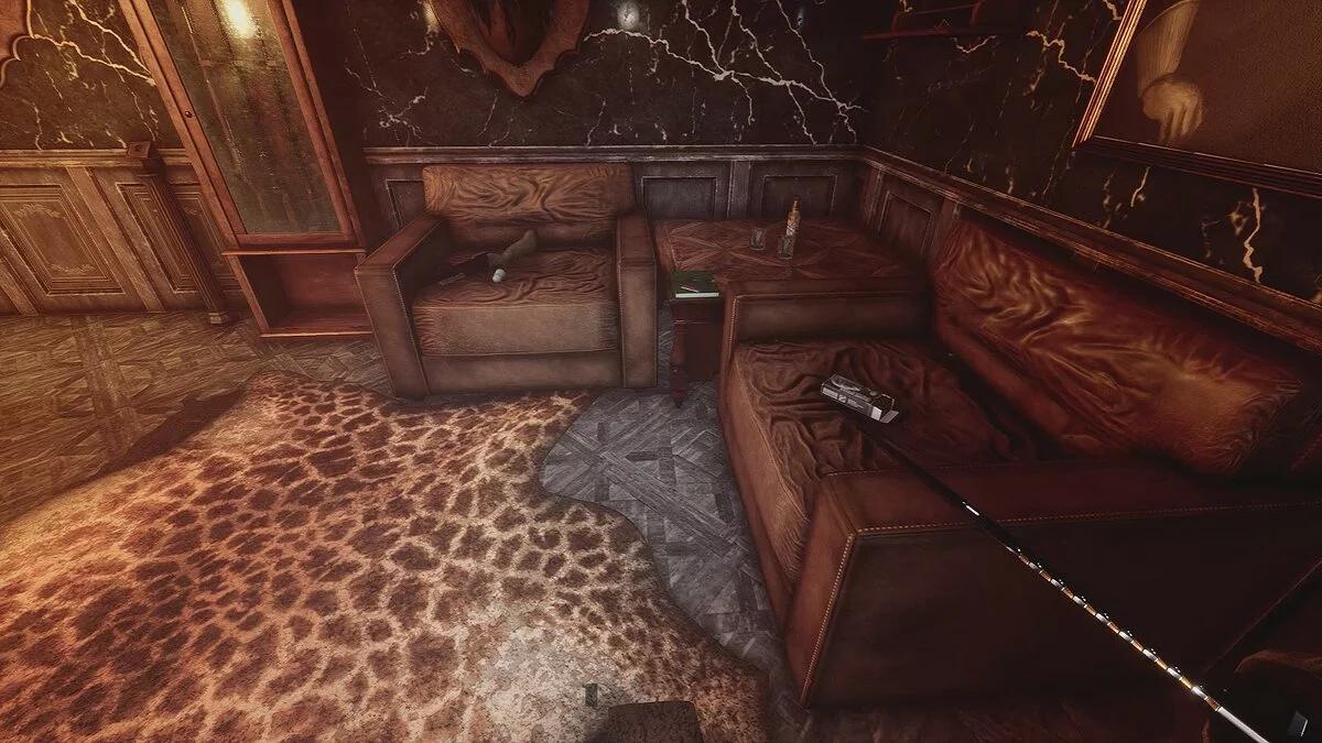Положите пластинку в сундук, она понадобится позже. Сейчас необходимо взять маленькие ключи, которые вы могли найти в охотничьей комнате с бильярдным столом, и отправиться на нижний этаж. Для этого спуститесь по лестнице, которая находится рядом с комнатой с камином и граммофоном.