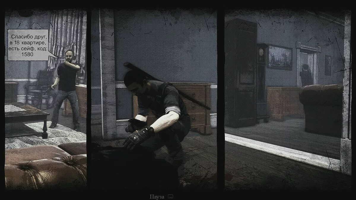 В этой же комнате осмотрите стол и заберите коктейль Молотова. Рядом с трупом полицейского лежат карманные часы, внутри которых есть код от шкафчика в полицейском управлении. Все коды мы описали ниже.