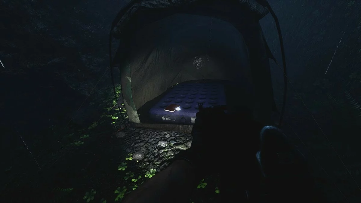 Как только спуститесь с платформы, сверните налево. Если сейчас пойти направо, то медведь начнёт гнаться за главным героем. Сперва мы рекомендуем осмотреть левую часть локации и место кемпинга, чтобы убить всех мертвяков.