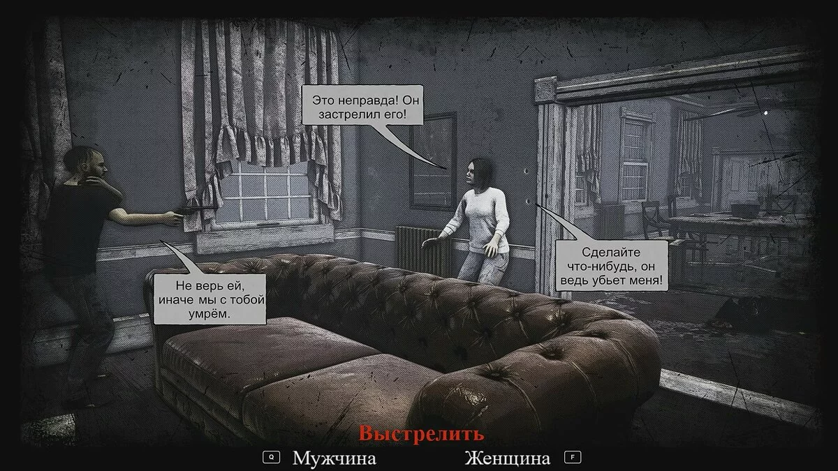 На самом деле правда за парнем. Если убьёте женщину, он скажет вам код от сейфа с патронами в соседнем номере. Код — «1580».