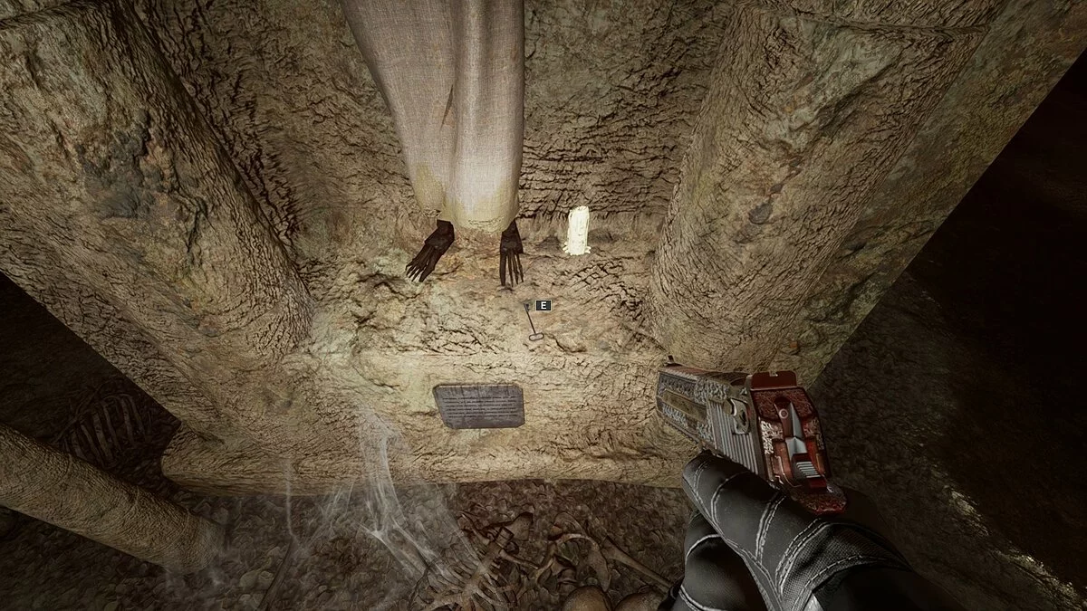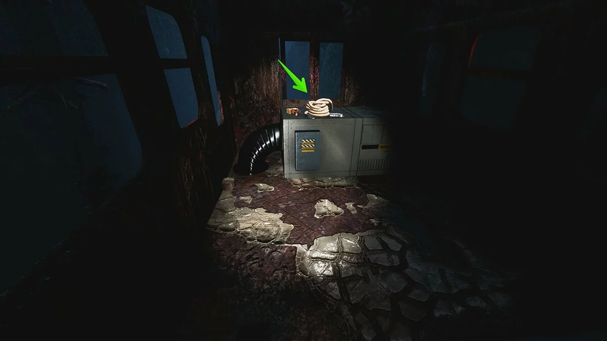 Протагонист отрежет медведю голову, а вы сможете подобрать бензопилу и ключи. Осмотрите руку машиниста, застрявшую в теле медведя, и вытащите ключ.