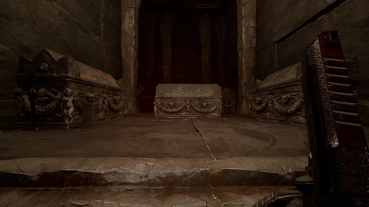 Бегите до конца зала и смотрите кат-сцену с главным вампиром. Слева от него есть склеп с его врагом. Подойдите к склепу и попытайтесь сдвинуть крышку. Ничего не выйдет, но как только вы отойдёте немного назад, начнётся видеоролик.