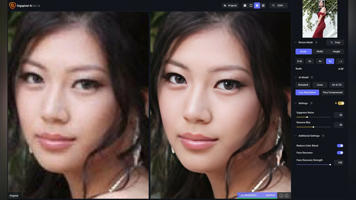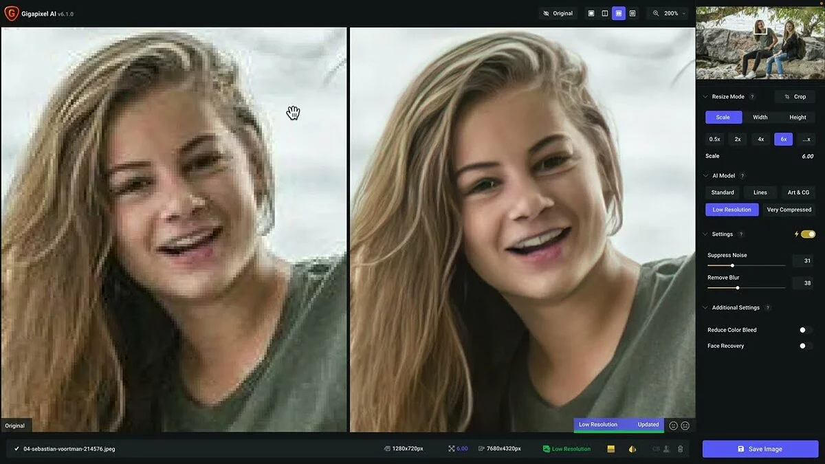 Данная программа — самая совершенная на данный момент. Она работает со всеми видами изображений, причём позволяет не только улучшать, но и настраивать сотни различных параметров. Topaz Gigapixel AI устанавливается как отдельная программа или надстройка для Photoshop. Стоимость — $99,99. При желании на официальном сайте можно скачать бесплатную демоверсию.