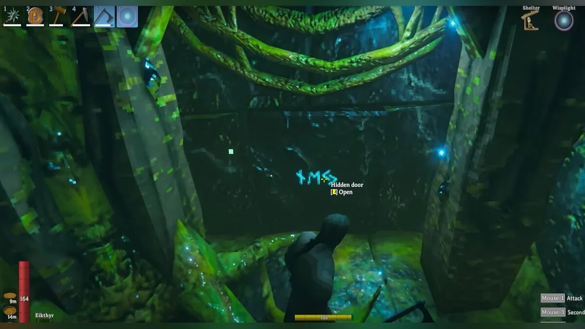 Обращайте внимание на особые стены, которые можно разбить при помощи кирки. Их внешний вид указан на скриншоте.