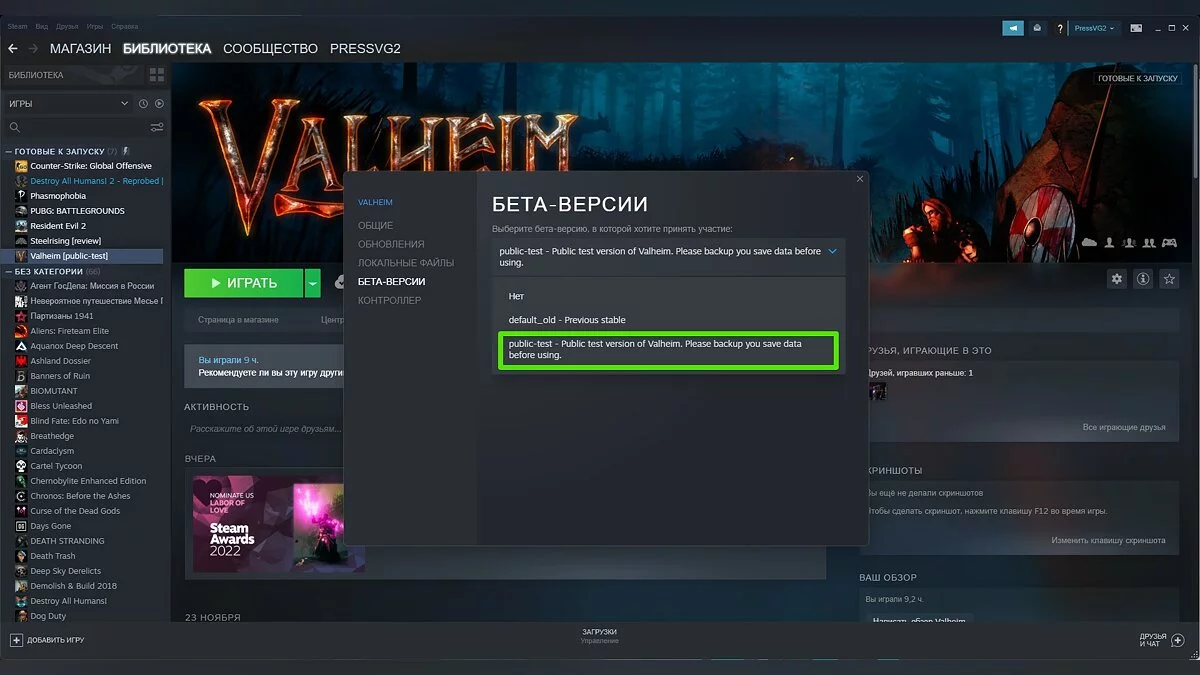 - Найдите в вашей библиотеке игру Valheim и щёлкните по пункту «Свойства».