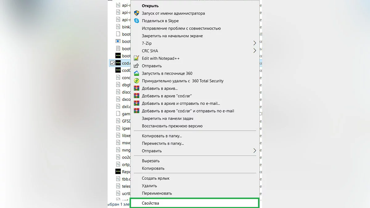 - В появившемся окне откройте папку «_retail_» и ПКМ выберите пункт «Свойства» у файла «cod.exe».