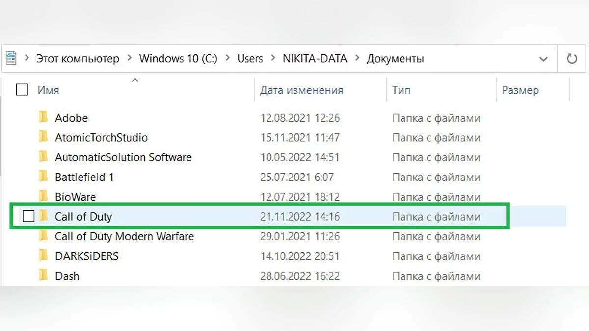 - Перейдите на уровень выше и скопируйте папку «Call of Duty» в нужное место.