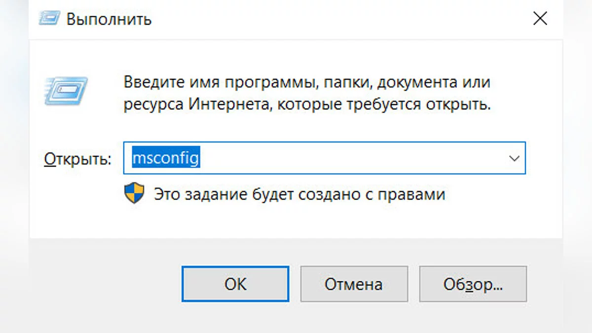 - В появившемся окне введите команду «msconfig» и нажмите Enter.