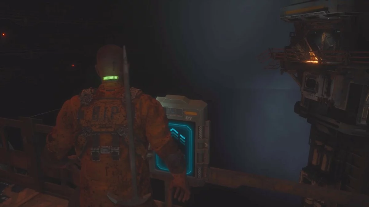 Взаимодействуйте с пультом управления и вернитесь через мостик обратно к запертой решётке. Здесь вас будет ждать заключённый. Он скажет, что нужно отыскать лифт.