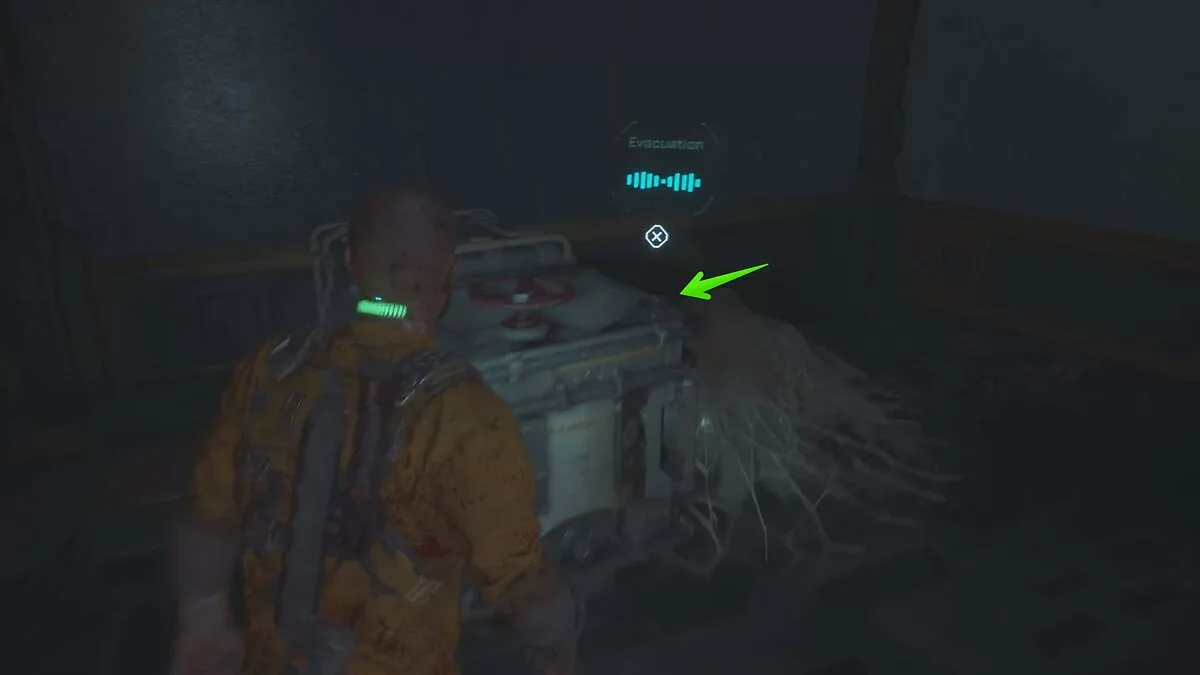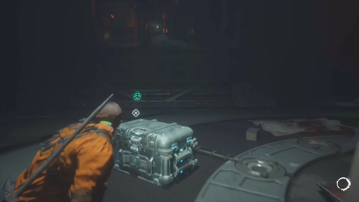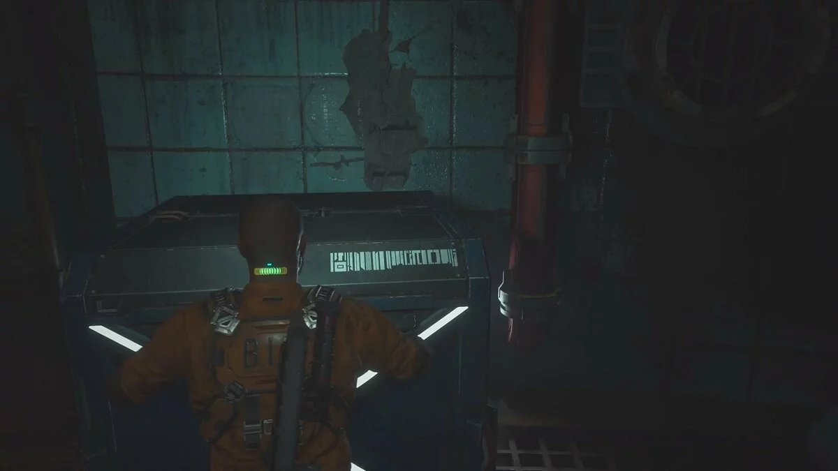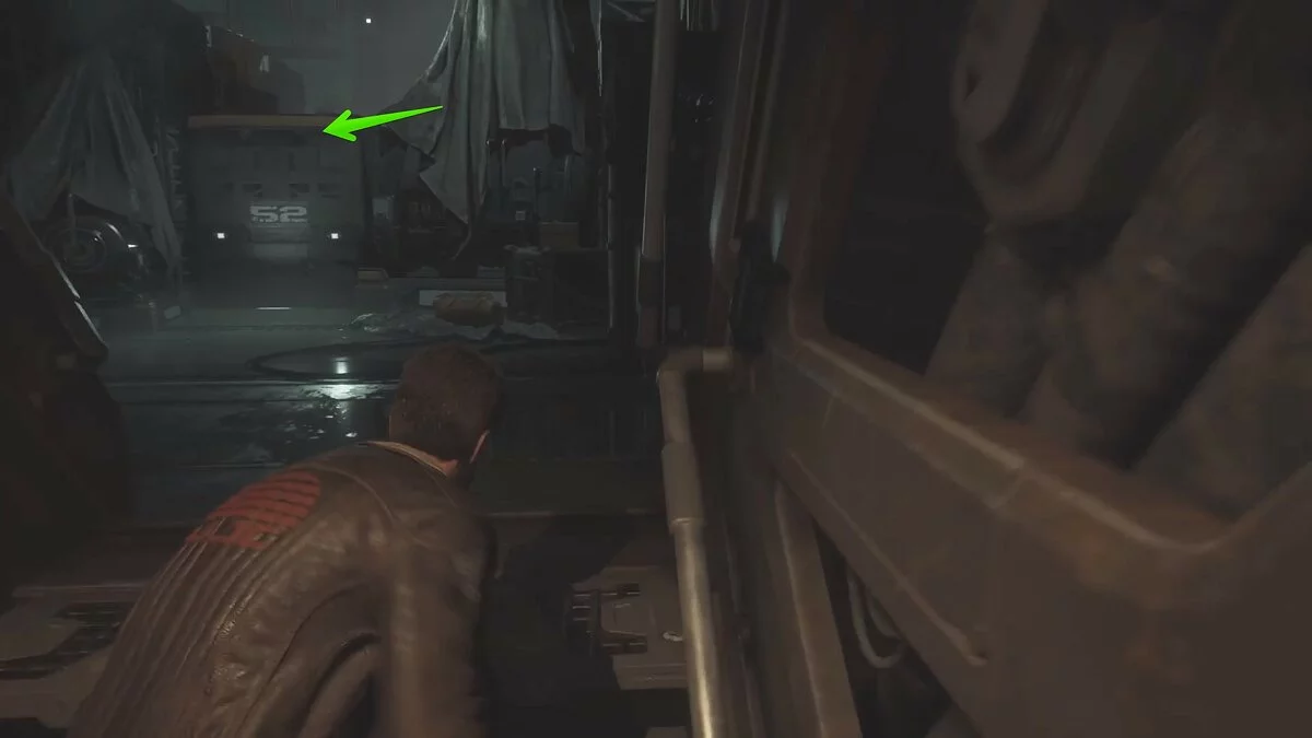 Следуйте по коридору и поверните направо. Взаимодействуйте с большим ящиком, на котором есть надпись «52», чтобы главный герой перебрался через него.