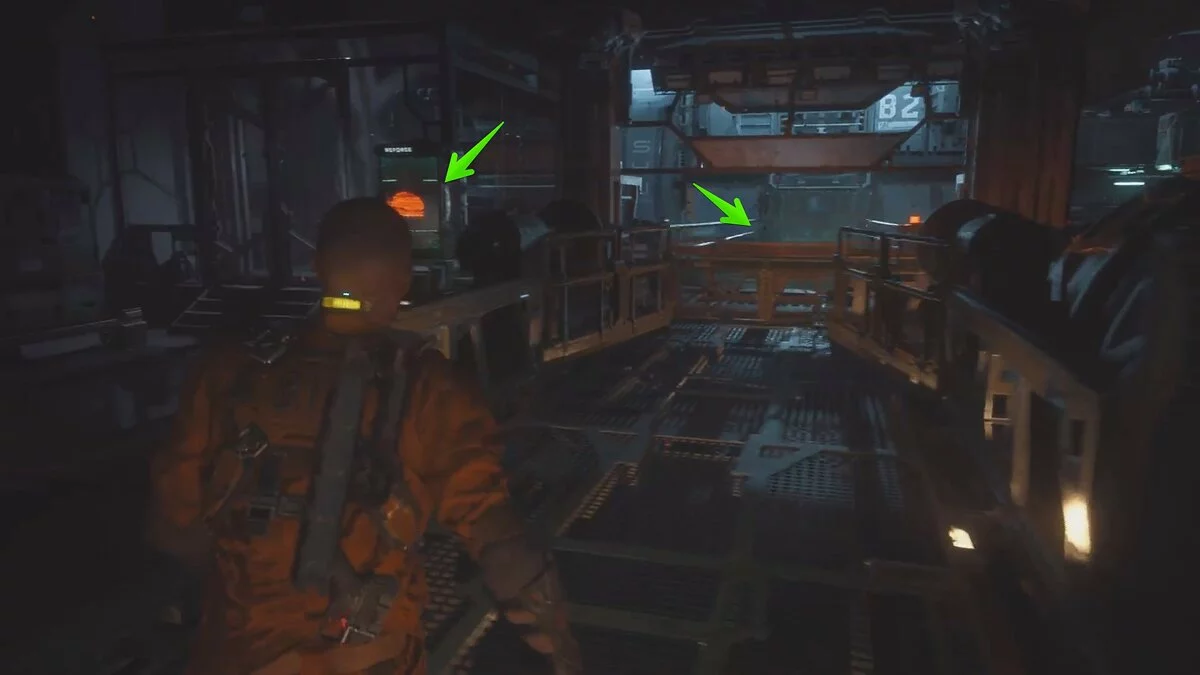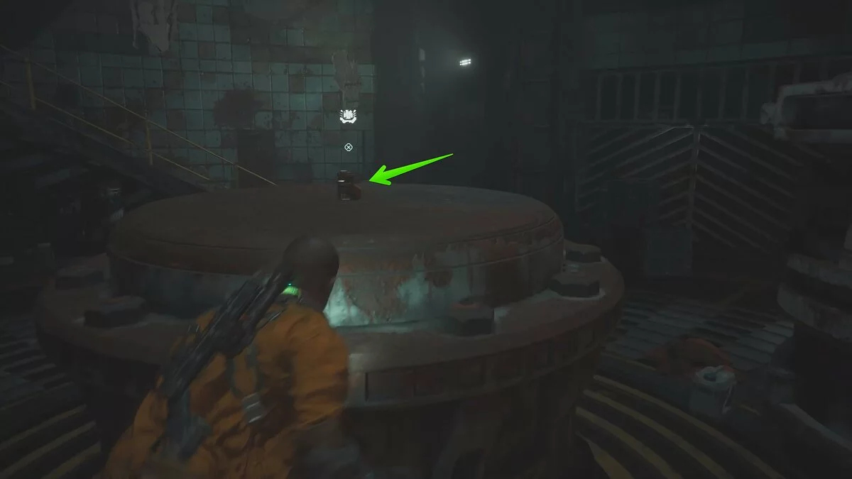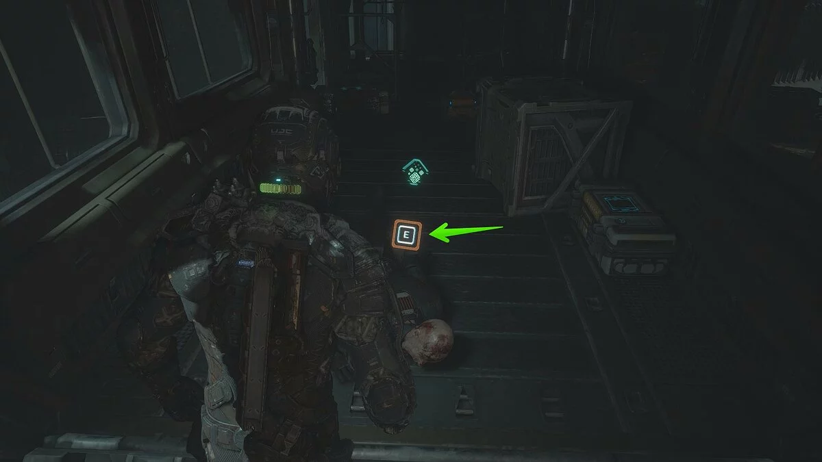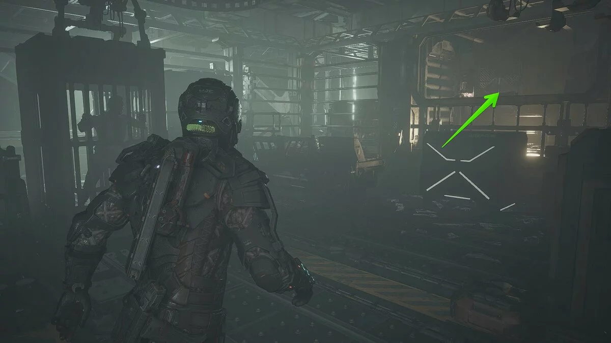 Следуйте по коридору и поверните направо. Взаимодействуйте с большим ящиком, на котором есть надпись «52», чтобы главный герой перебрался через него.