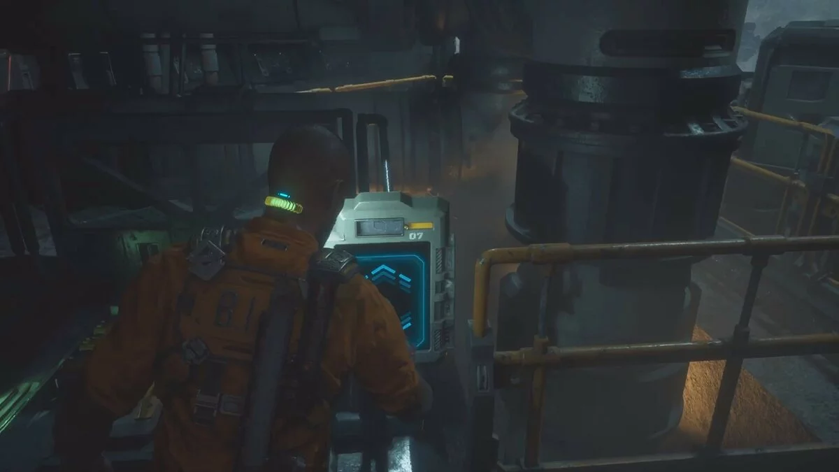 Из тайной комнаты вернитесь немного назад и найдите лестницу. Она приведёт вас в комнату управления реактором. Взаимодействуйте с консолью и спуститесь в реакторный зал.