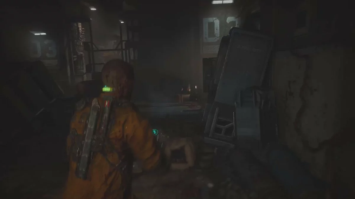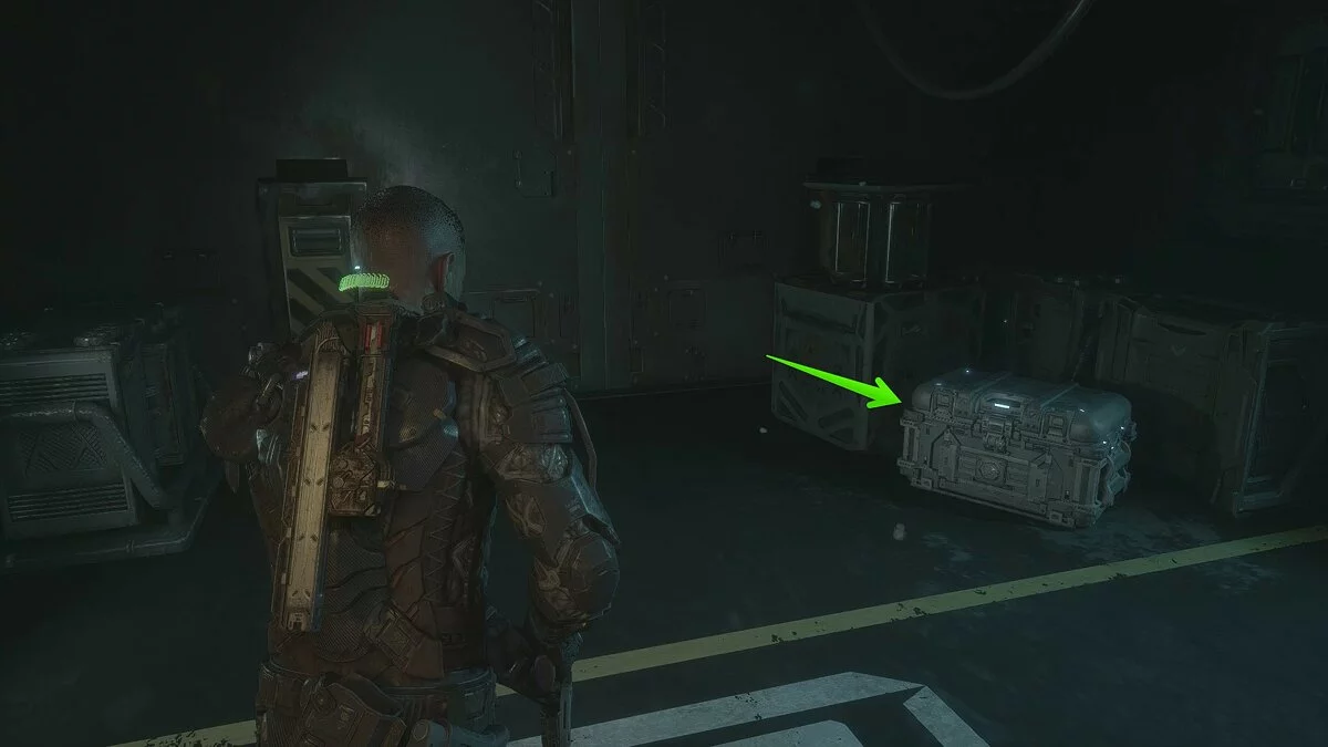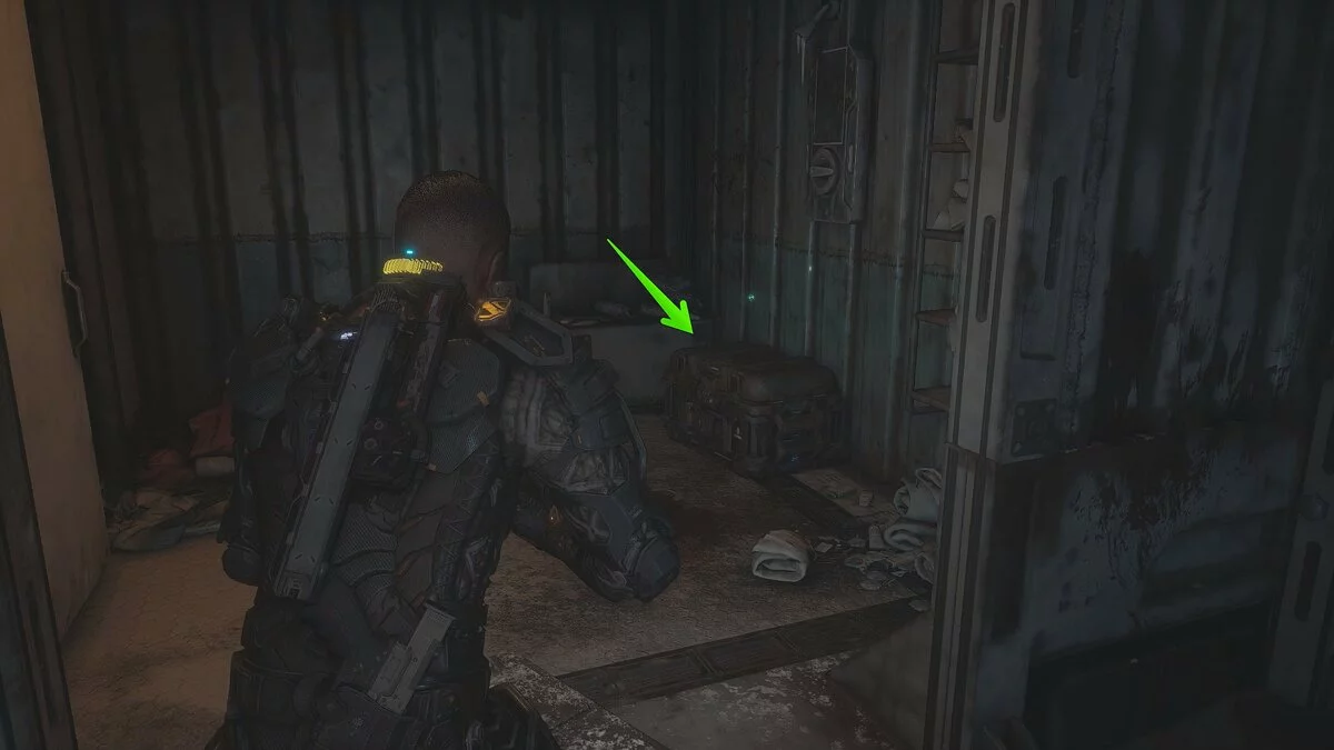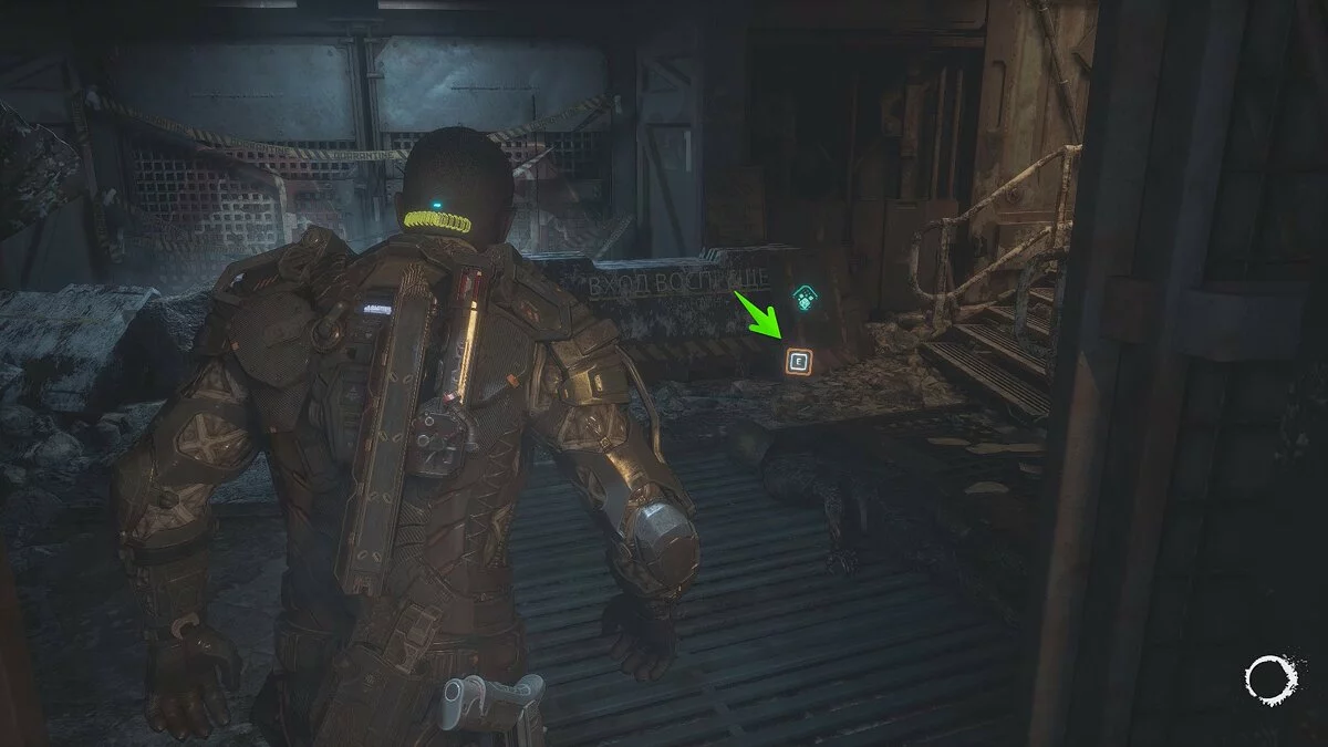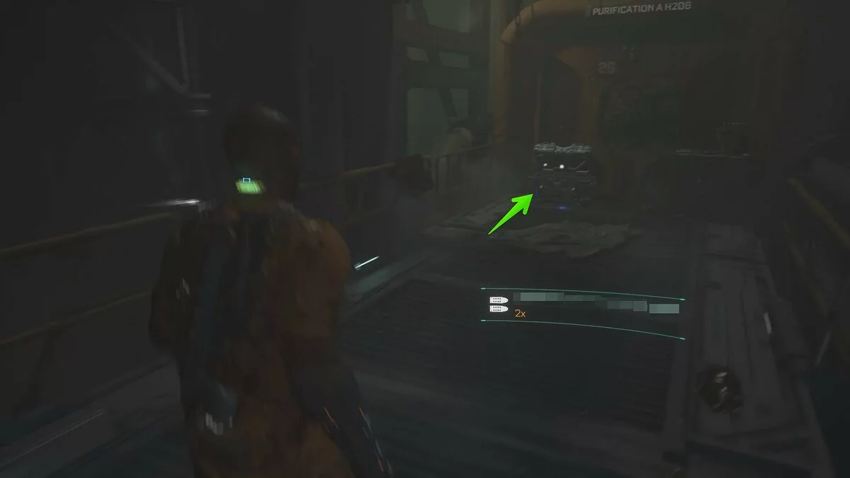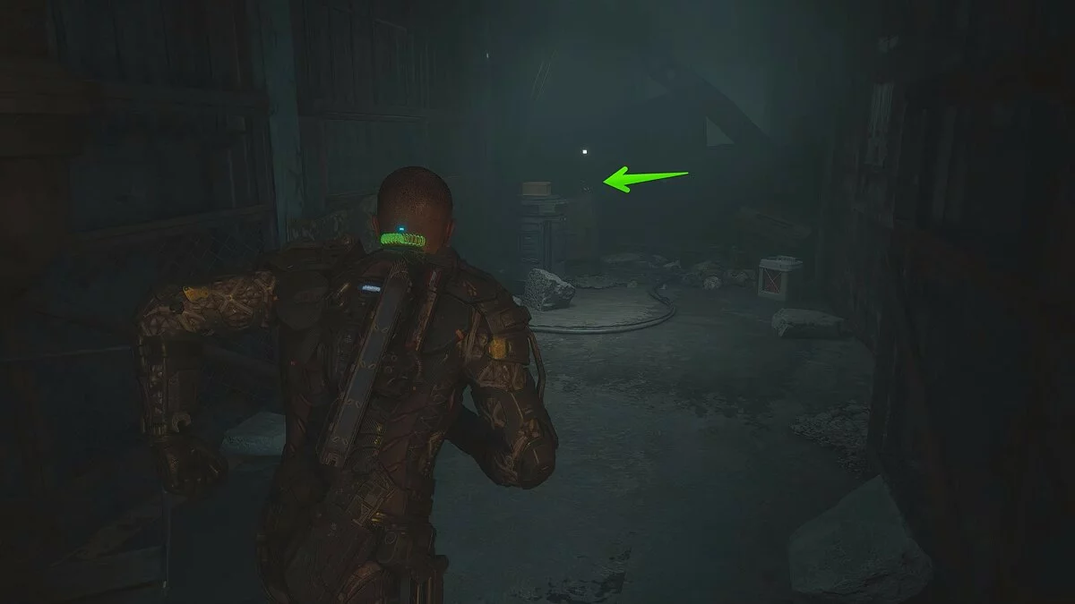 Элиас даст вам часть пистолета. Используйте специальное устройство, чтобы напечатать дополнительные детали для оружия. Осмотрите ящик в правой части комнаты. Внутри есть кредиты, патроны, восстанавливающая инъекция и преобразователь энергии.