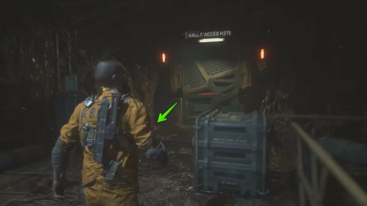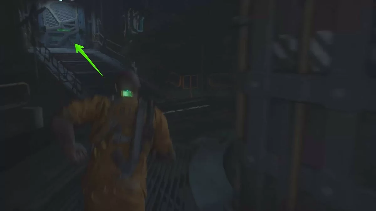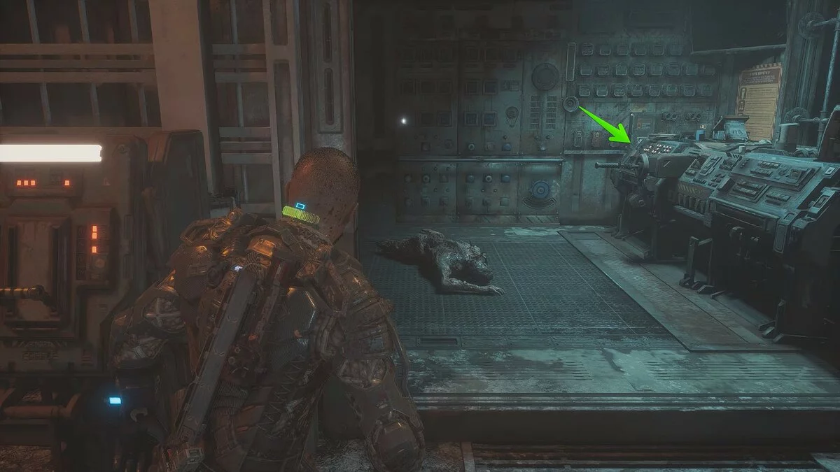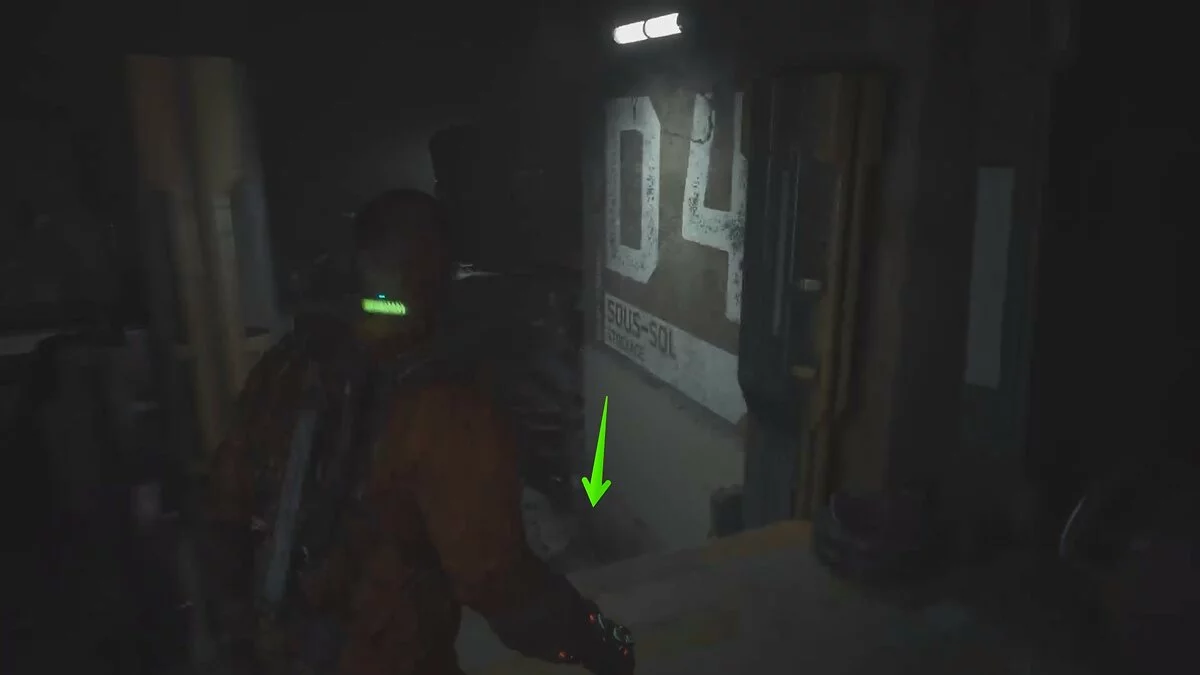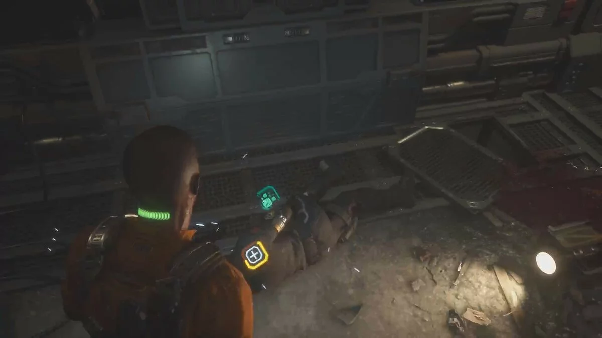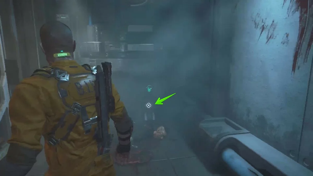 Рядом с вентилятором вы можете заметить паразита. Если не хотите, чтобы он вцепился в героя, выстрелите по нему несколько раз. В дальней части комнаты на вас также нападёт монстр. Неподалёку от места, где он появится, лежит труп офицера. Осмотрите его и заберите личное дело (6/7). Рядом с вентилятором есть ящик с припасами.