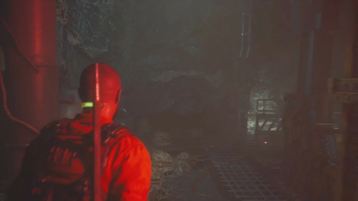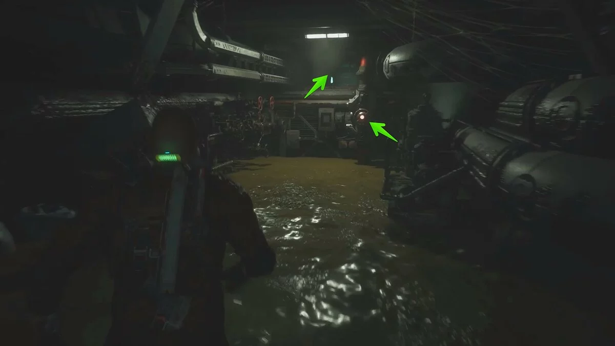 Спуститесь на лифте и убейте ещё нескольких заражённых. Один из мутантов будет атаковать героя слизью. Вовремя уклоняйтесь от подобных атак. Осмотрите камеры на наличие патронов и здоровья. Теперь мы советуем спуститься в шахту лифта и отыскать ящик с припасами.