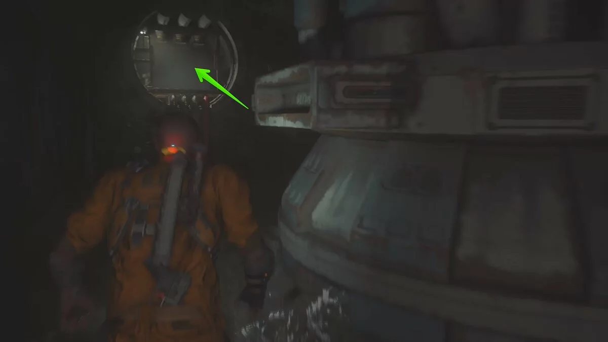 Поверните направо и осмотрите стену слева. Здесь вы увидите вентиляционную шахту — забирайтесь внутрь. Подождите, пока робот уйдёт, и выбирайтесь из шахты. Пройдите позади него и подойдите к двери. В следующем коридоре примените гаечный ключ на электрощитке.