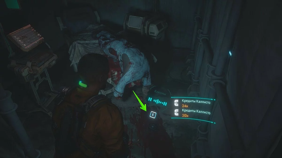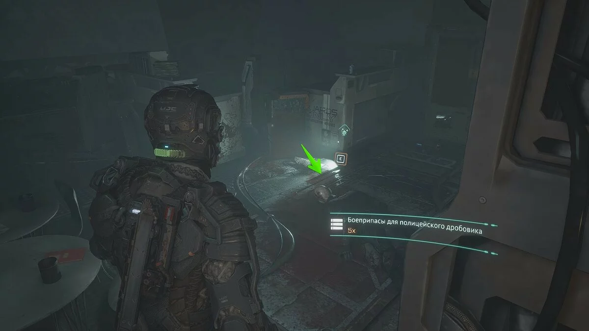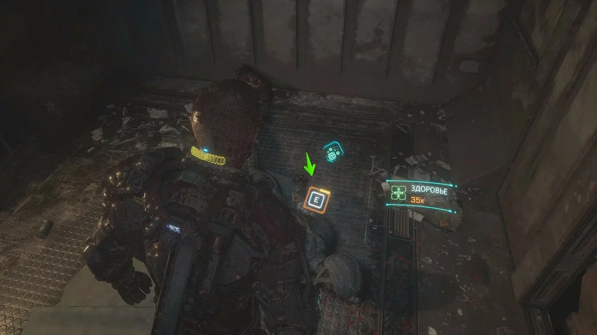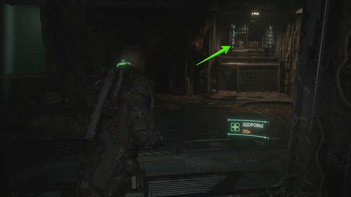 Здесь же осмотрите шкафчики на наличие полезных предметов. Стоит предупредить, что в одном из них прячется паразит. Отыщите патроны, инъектор и батарею.