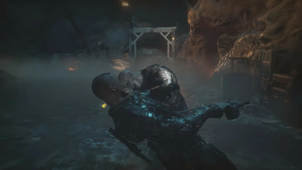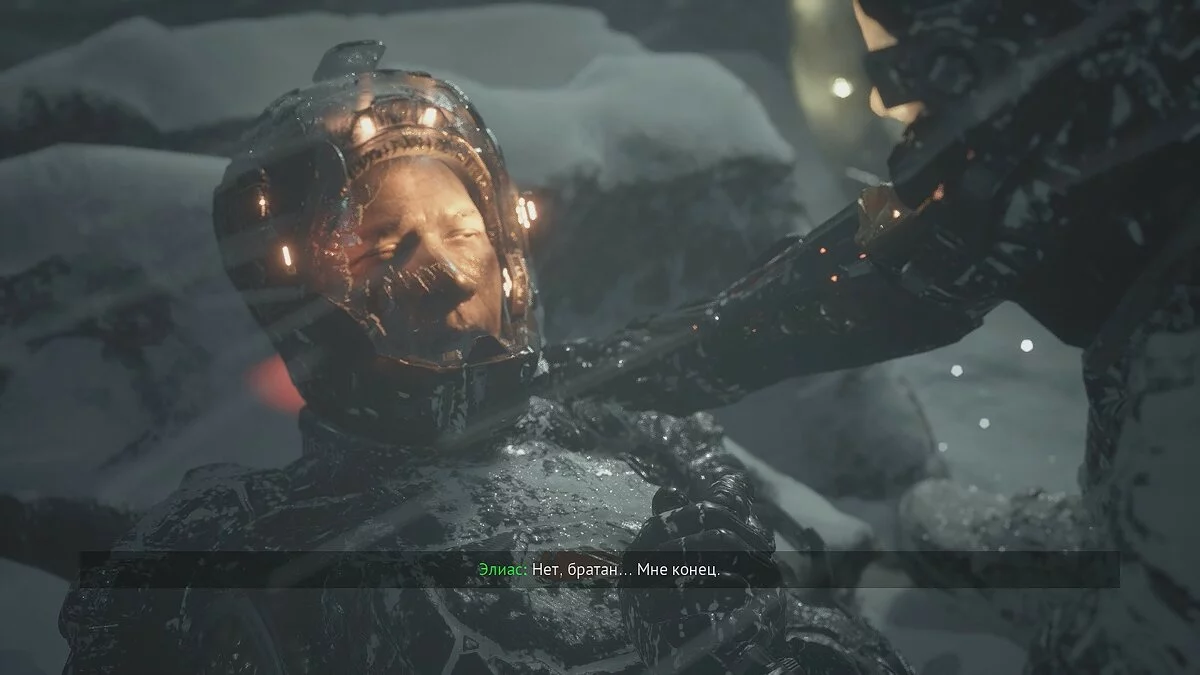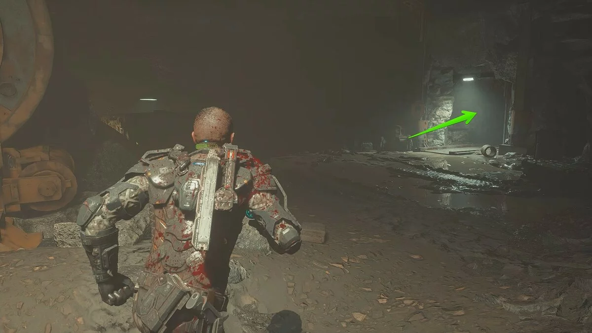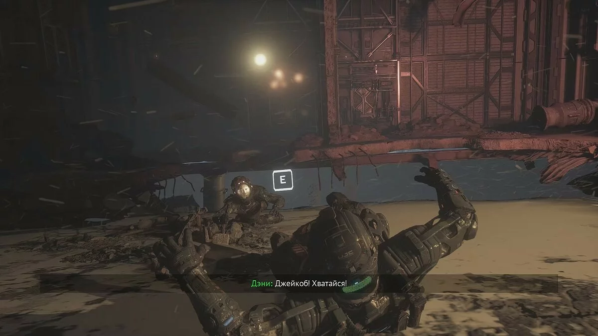 После непродолжительной беседы Элиас предложит восстановить питание. Спуститесь по лестнице вниз и подождите, пока приятель не откроет проход к лифту. Слева от него, к слову, есть устройство для улучшения оружия.