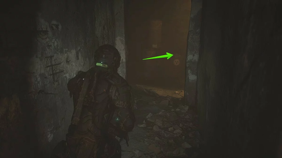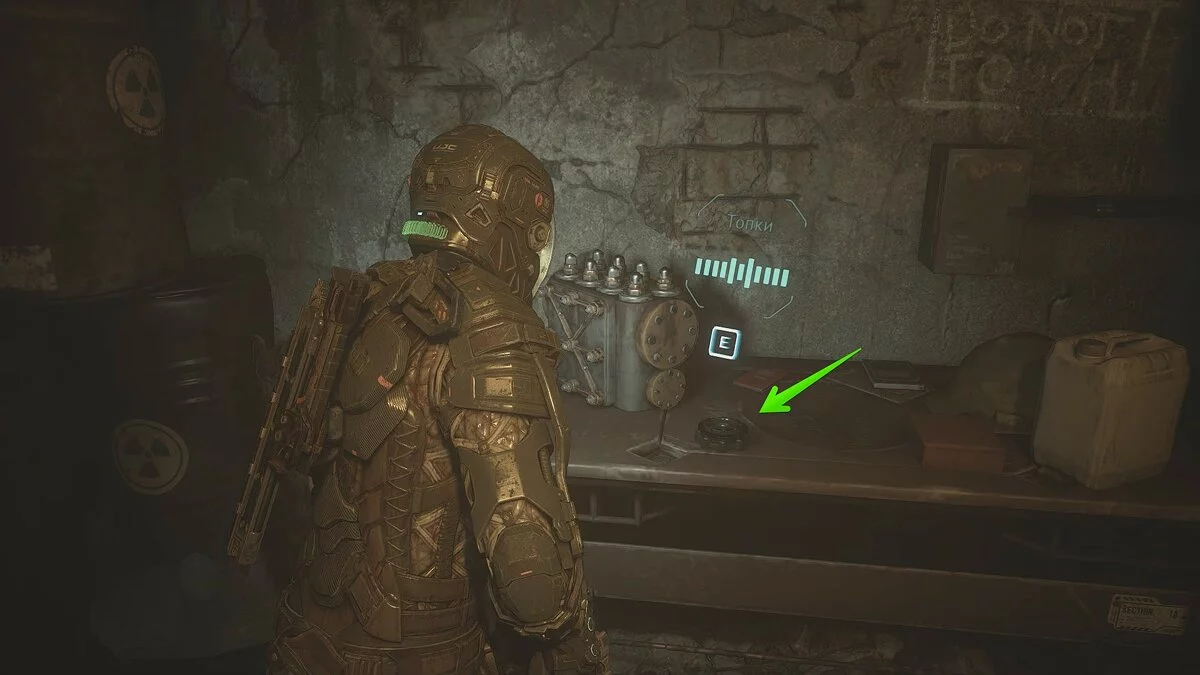 Теперь бегите в правую часть локации, но будьте осторожны — здесь появятся камикадзе и парочку неприятных типов. Вставьте предохранитель в устройство и осмотрите комнату. Внутри есть автомат для улучшения оружия, а также труп с аудиозаписью (6/7) «Дневник шахтёра 4».