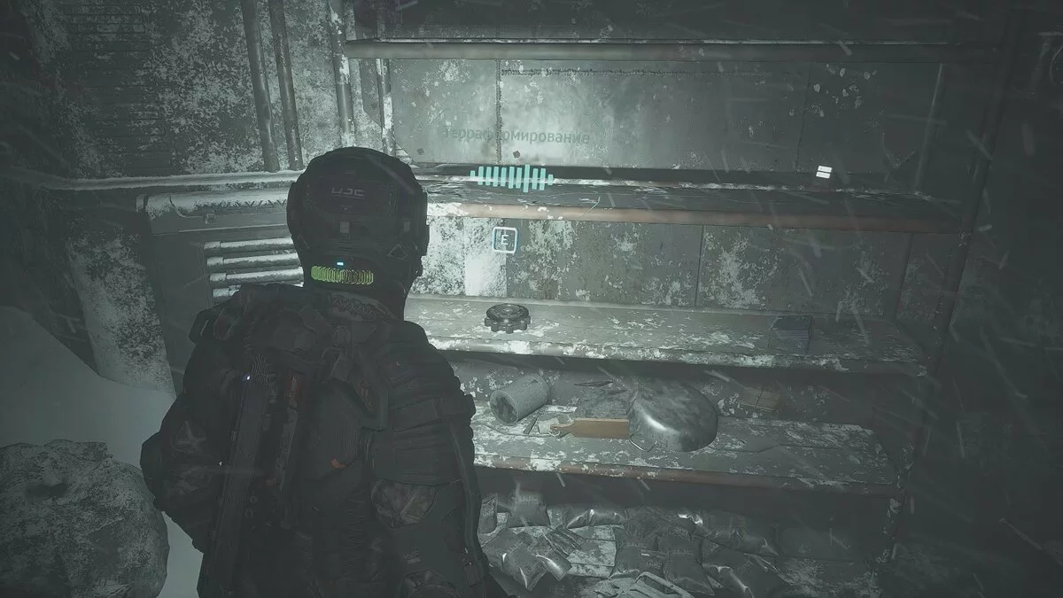 Поднимитесь на лифте, заберите припасы из ящика. Пока Дэни будет открывать гермодверь, осмотрите ящик у лестницы. Здесь последняя аудиозапись (8/8). Чуть выше лежит преобразователь.