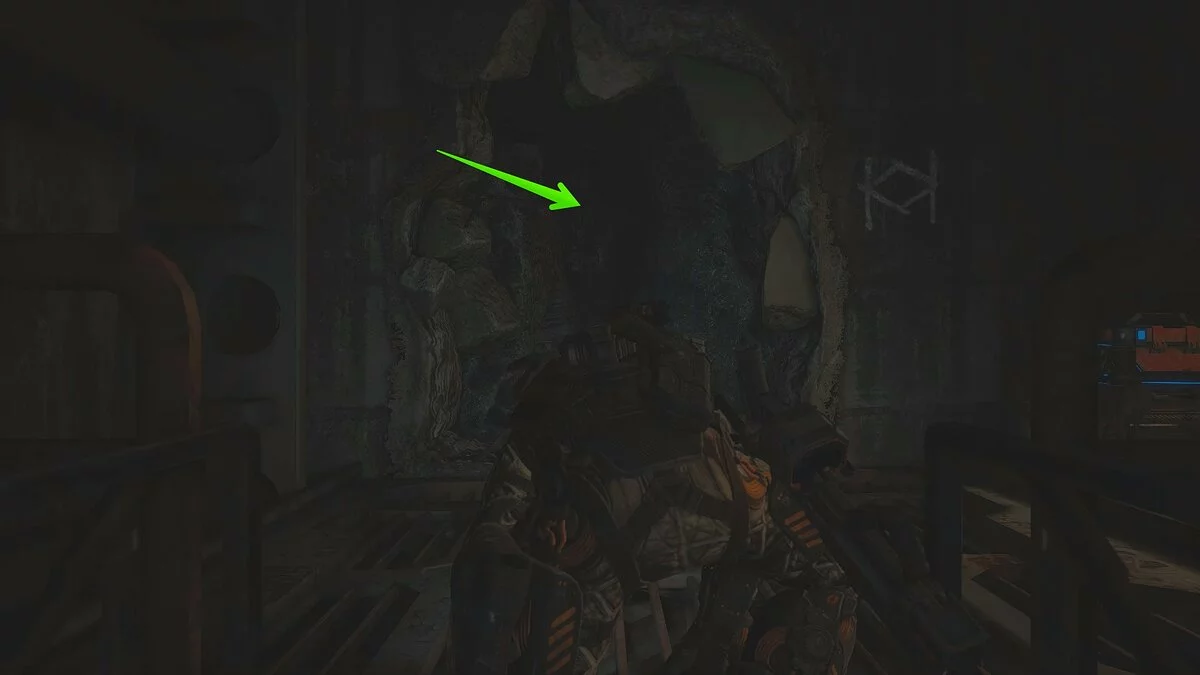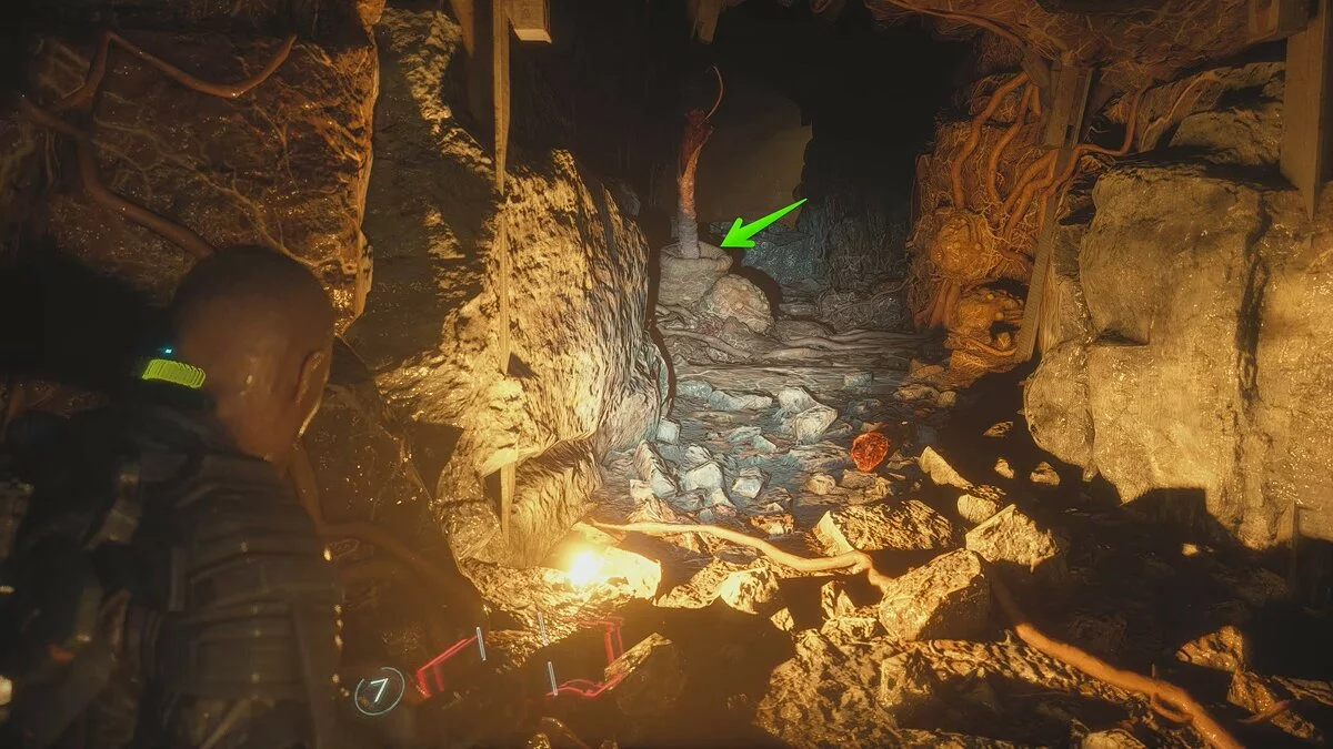 Поднявшись по лестнице, прямо перед собой вы увидите трещину в стене. Сюда можно протиснуться. Следуйте до конца пещеры, чтобы отыскать вход во вторую тайную комнату. Стоит отметить, что по пути на вас нападут несколько заражённых.