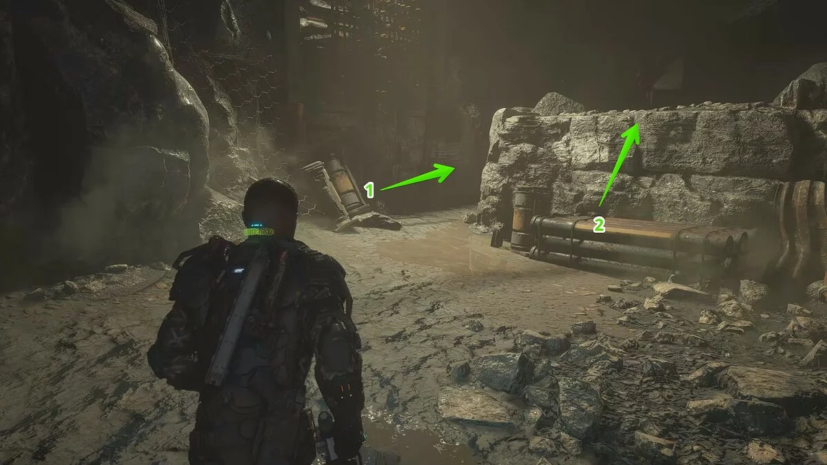 Для этого следуйте в левую сторону и спуститесь в шахту лифта. Бегите в правую сторону, в тупике лежит ящик. Как только вы его отыщите, на героя нападут два монстра. Разберитесь с ними.