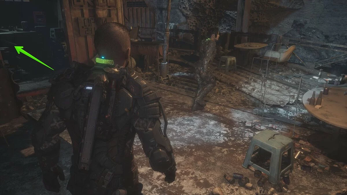 После сражения осмотрите контейнеры и соберите припасы. Следуйте за Дэни. Девушка пойдёт в правую сторону, а вы зайдите в бар слева. На балконе есть преобразователь энергии.