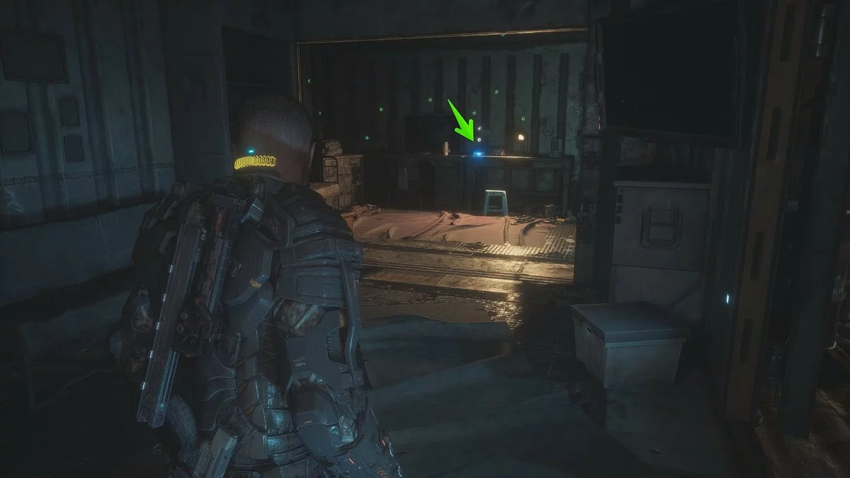 После вступительной кат-сцены следуйте в грузовой отсек корабля и подождите, пока дверь откроется. Вы также можете осмотреть другие разблокированные двери. В одной из кают подберите аудиозапись (1/1).