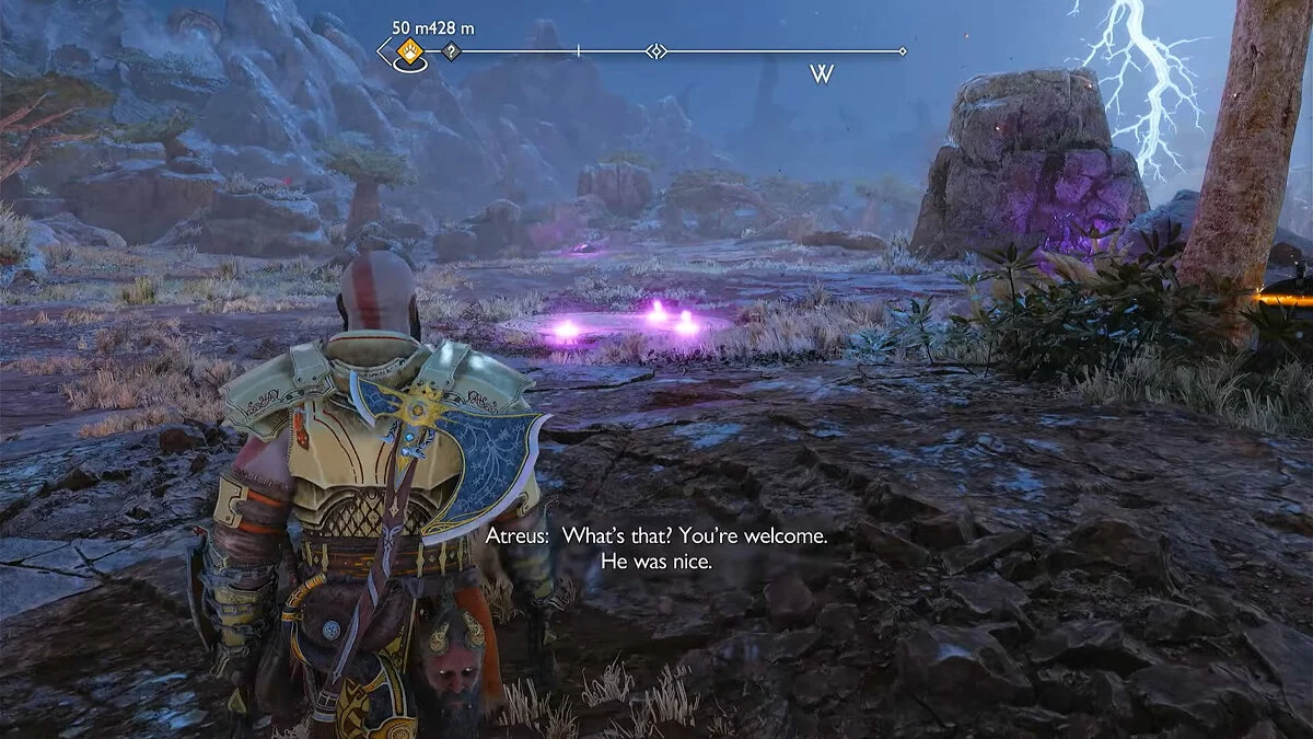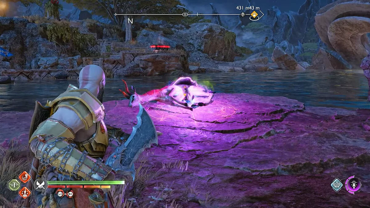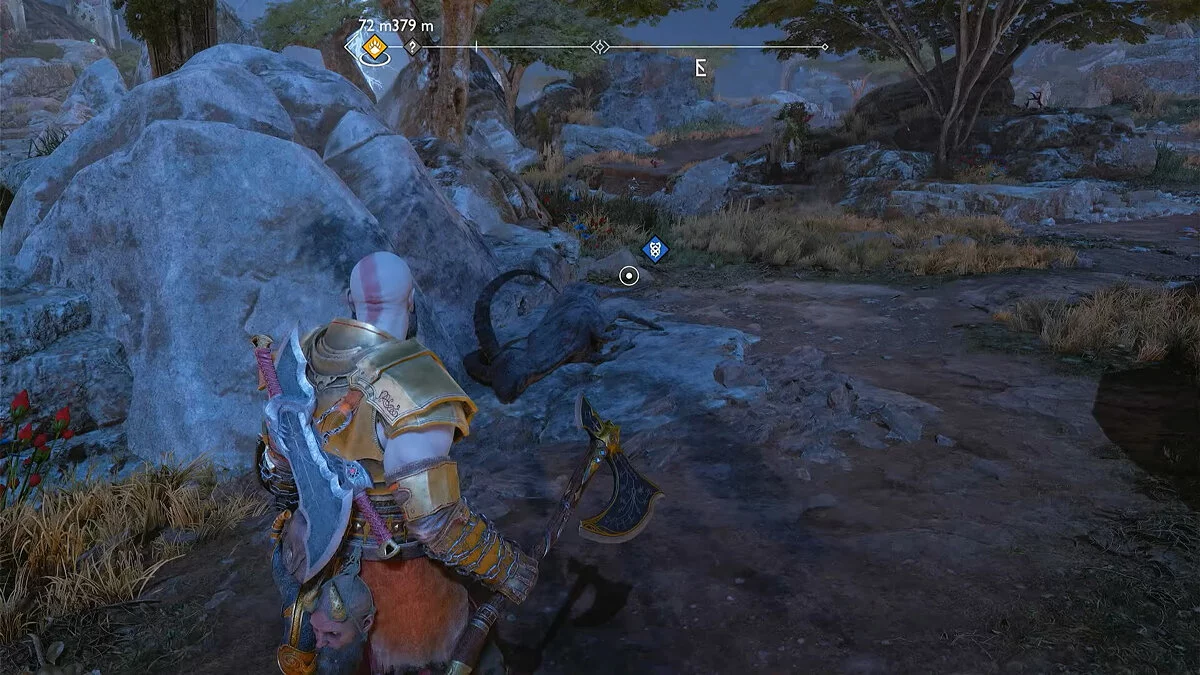 Для этой просьбы также необходим доступ в Кратер, который можно получить в рамках предыдущего этапа. Квест «У всех на виду» можно активировать в Равнинах, осмотрев убитого оленя. Изучите второе тело животного на северо-западе. Затем доберитесь до груды камней, отмеченной по заданию, и атакуйте её, чтобы начать бой с Пожирателем душ. Одержав над ним победу, в награду Кратос получит клеймо охотника.