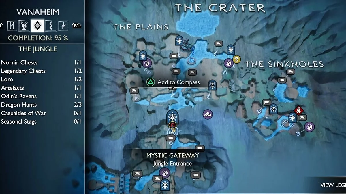 После этого смените время суток на ночь и отправляйтесь в южную часть Равнин. Там Кратос должен обнаружить путь в Джунгли. На юго-западе новой локации вы получите дополнительное задание «Возвращение реки». После его завершения каньон снова наполнится, что откроет доступ в закрытые области.