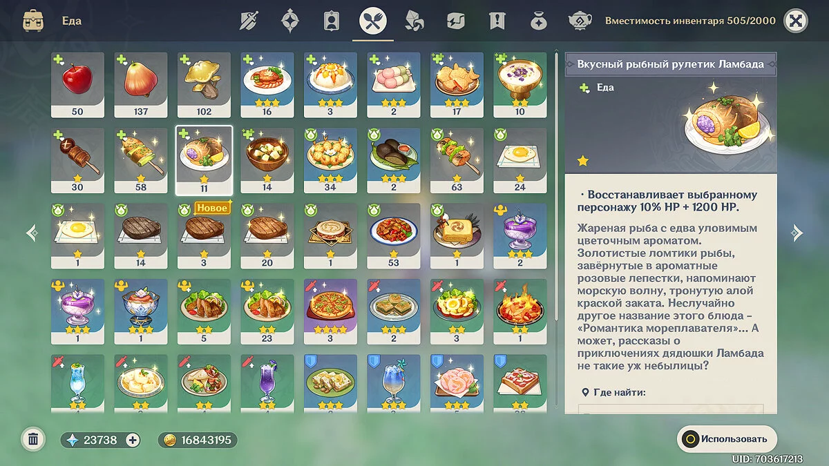 Рыбный рулетик Ламбада. Восстанавливает 8-10% жизненной силы и дополнительно 800-1200 очков здоровья.