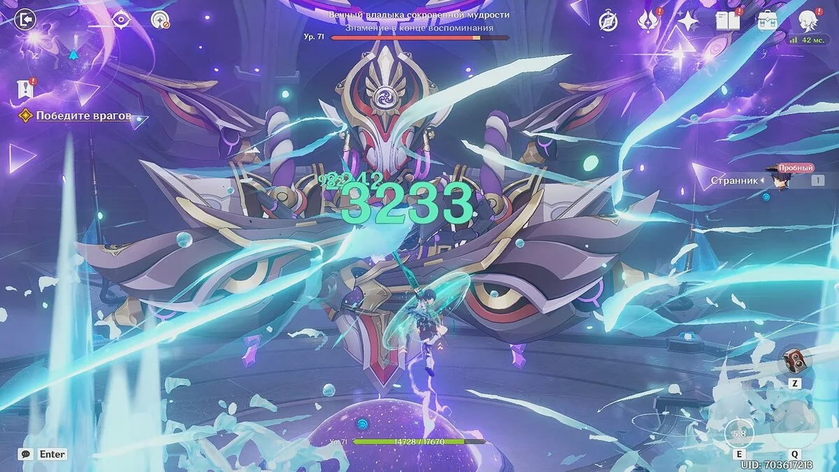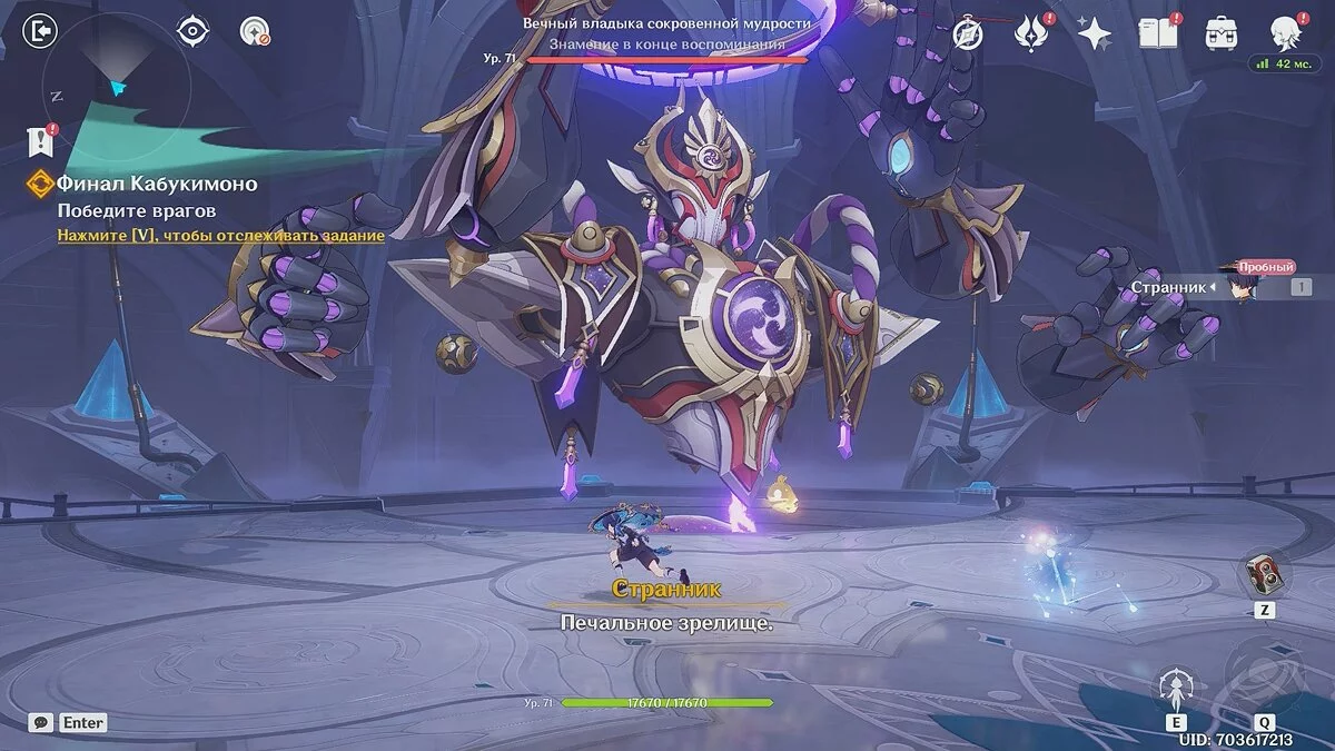 Смотрите ещё несколько кат-сцен с различными героями, затем вы окажетесь на арене с Вечным владыкой сокровенной мудрости. В качестве героя вам будет доступен только Странник.