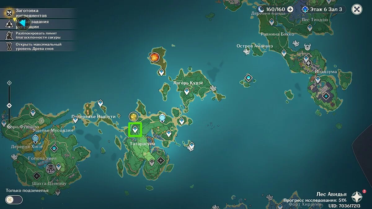 Теперь нужно отправиться на остров Татарасуна и отыскать важные подсказки. Он находится на западе от острова Инадзума.