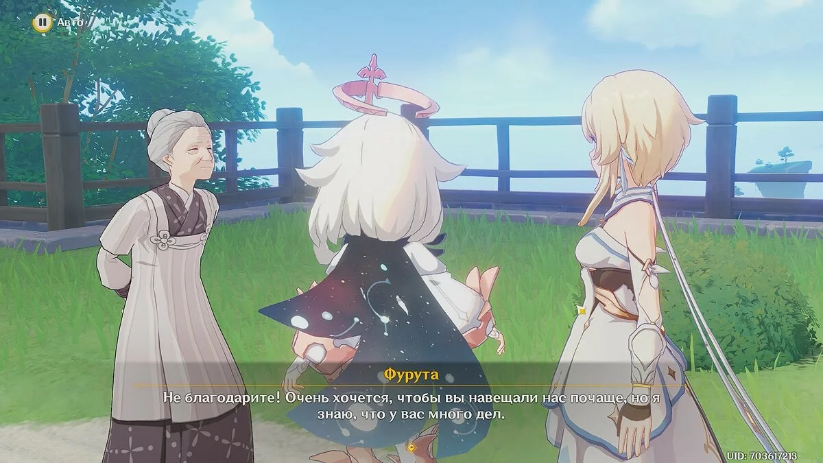 По прибытии с вами заговорит представитель комиссии Хиротацу и сопроводит героя к бабушке по имени Фурута.