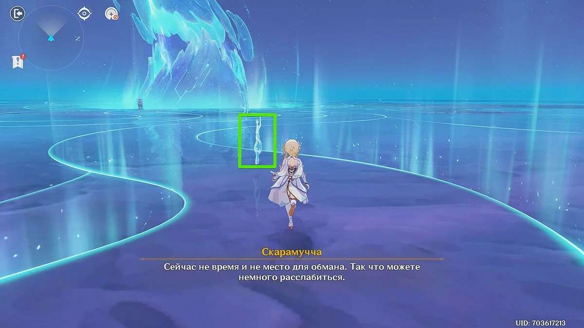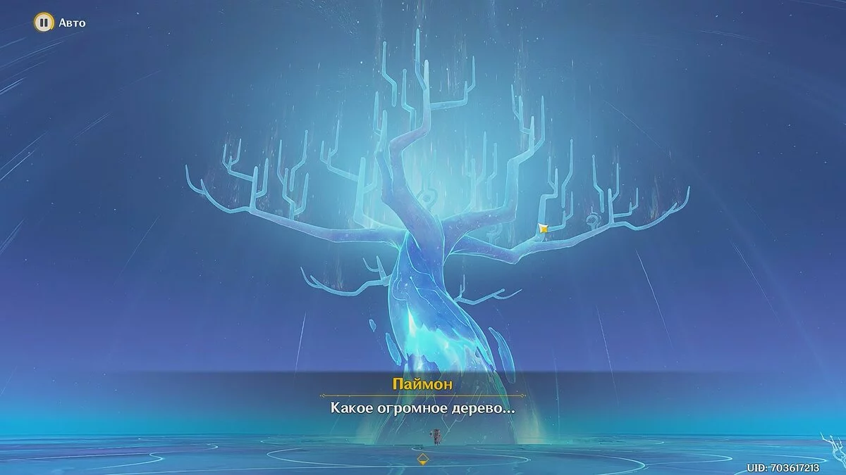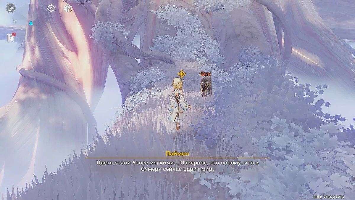 После этого придётся немного подождать. Можете побродить вокруг дерева или просто бездействуйте около минуты. Скарамучча сам заговорит с героем. Вскоре Нахида скажет, что её останавливает какая-то невидимая сила. Вы снова окажетесь в городе Сумеру.