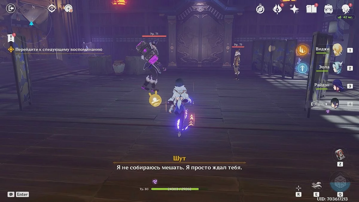 После двух очередных воспоминаний вы попадёте на арену с несколькими последователями Фатуи. Убейте их и переходите в следующую комнату. Здесь также будут ждать враги.