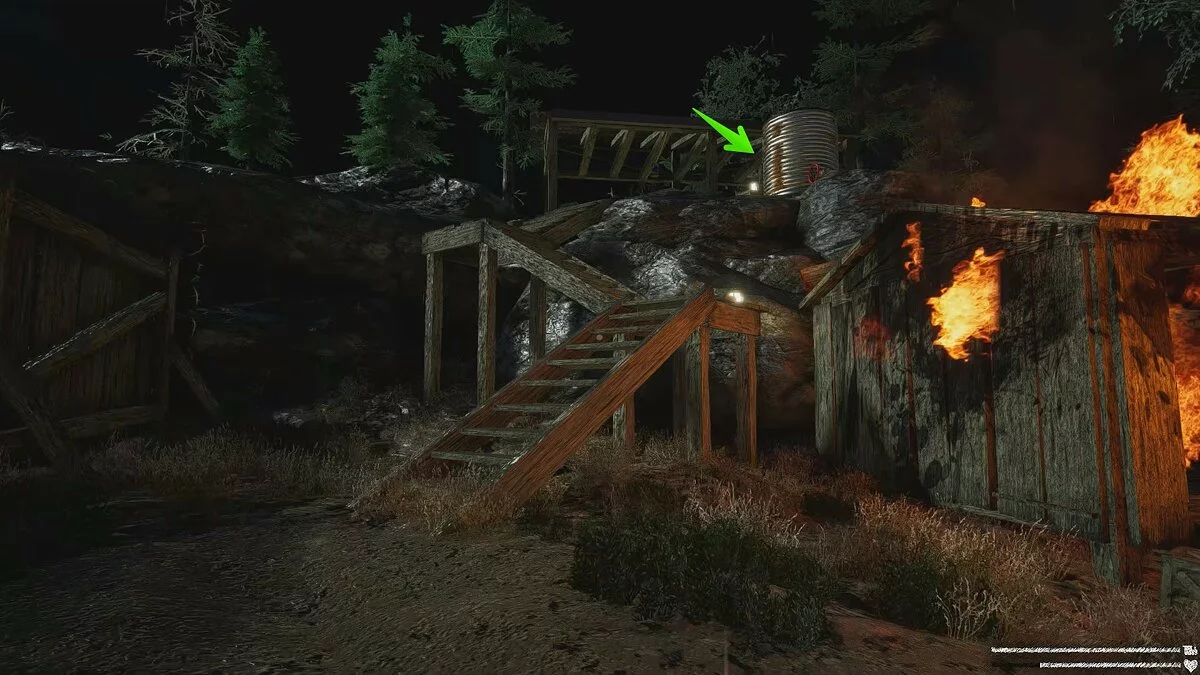 Прибыв на место, вы увидите, что его ангар охвачен огнём Побеседуйте с мужчиной, после чего поднимитесь по лестнице к цистерне и взаимодействуйте с вентилем. Огонь потухнет, а вы получите оружие.