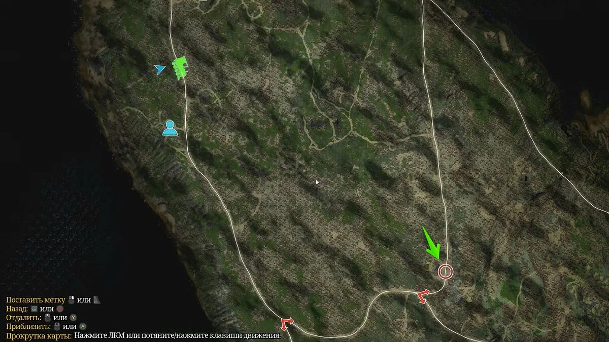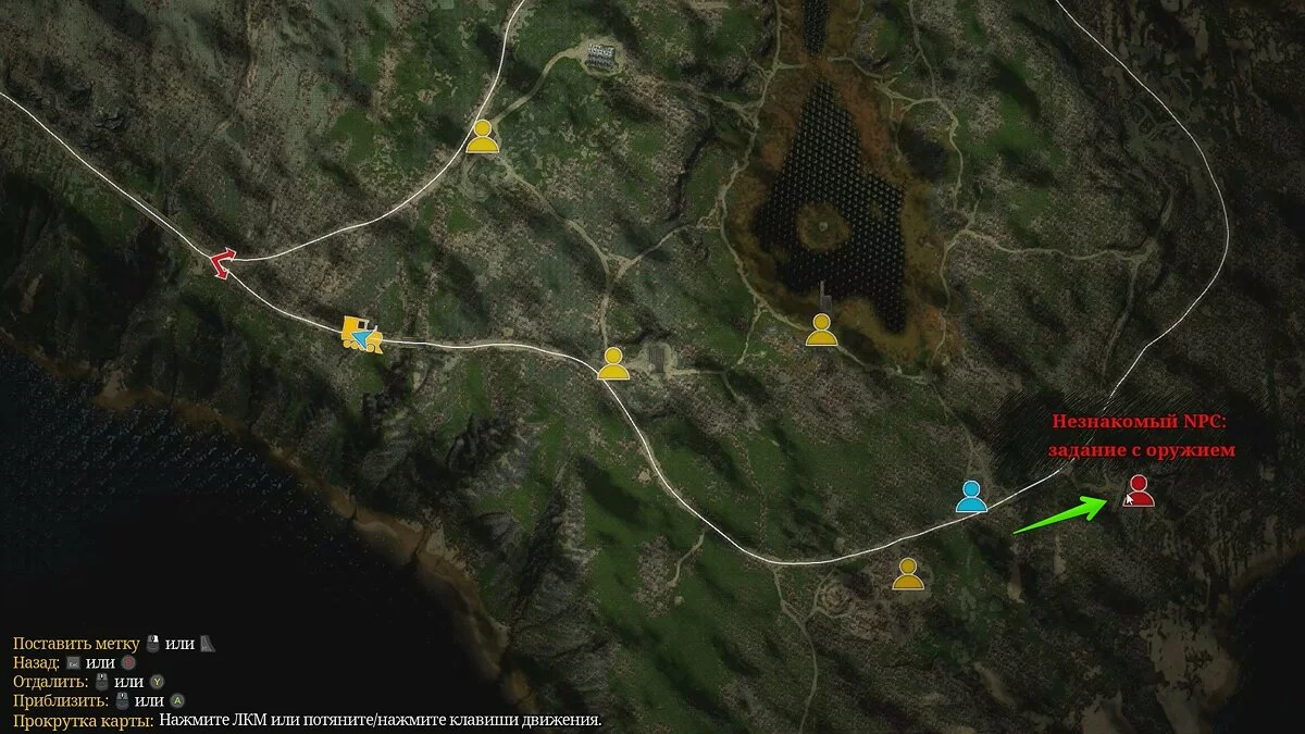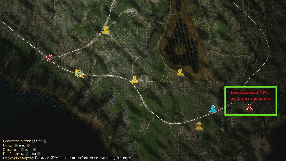 Неподалёку от предпоследнего сюжетного персонажа вы найдёте Гертруду. Женщина отметит на вашей карте логово бандитов, которые украли запчасти для тяжелого пулемёта.