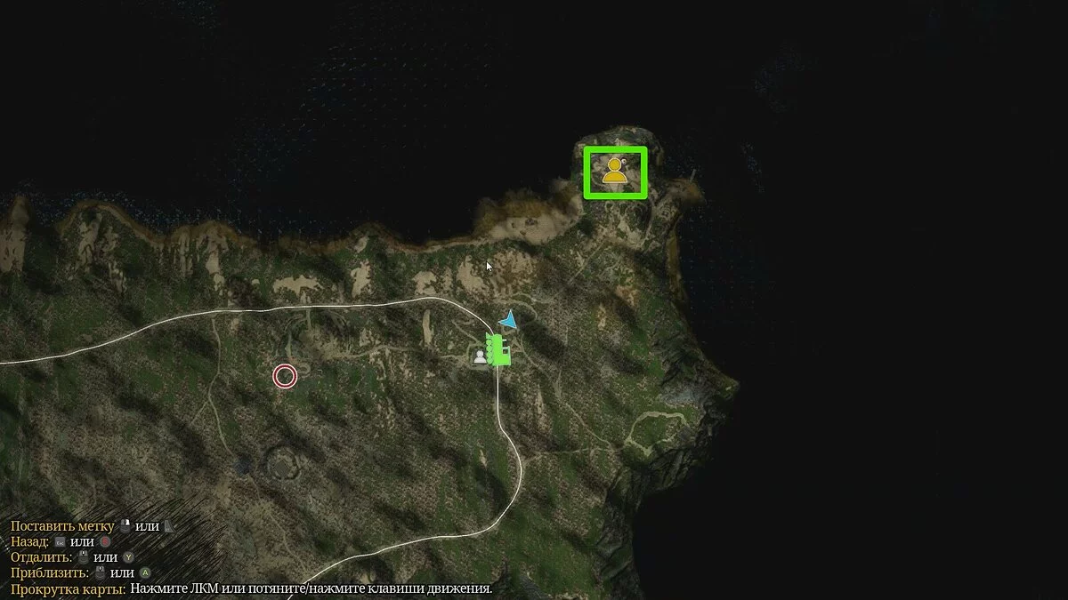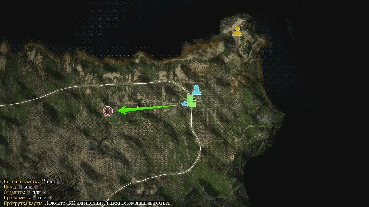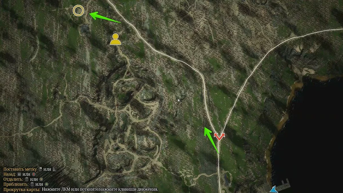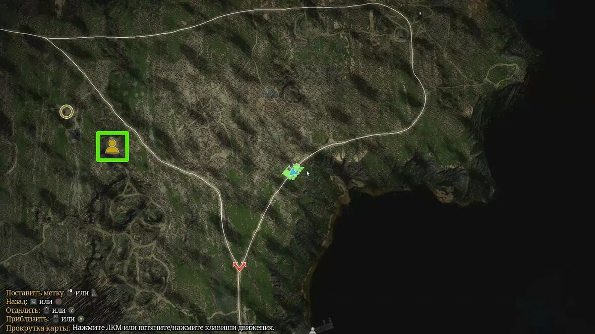 Неподалёку от предыдущей жительницы вы можете отыскать пожилую даму. Бегите к отмеченному на карте персонажу и побеседуйте с ней. Она попросит добраться до острова посреди озера и найти кусок мяса. Только есть одно условие: в воде живёт болотный монстр. Если он подплывёт близко — просто остановитесь и подождите, пока он снова исчезнет.
