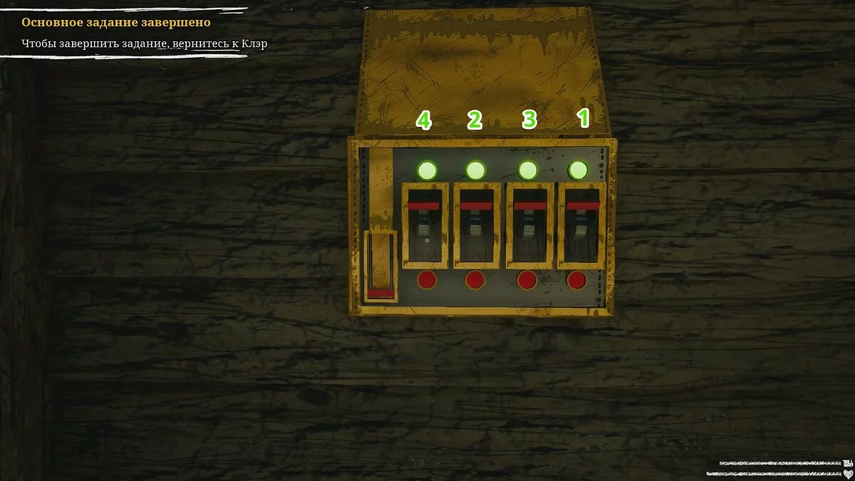 Женщина сидит в здании маяка. Поговорите с ней и возьмите задание. Покиньте маяк и осмотрите сарай неподалёку. Заберите четыре рубильника.