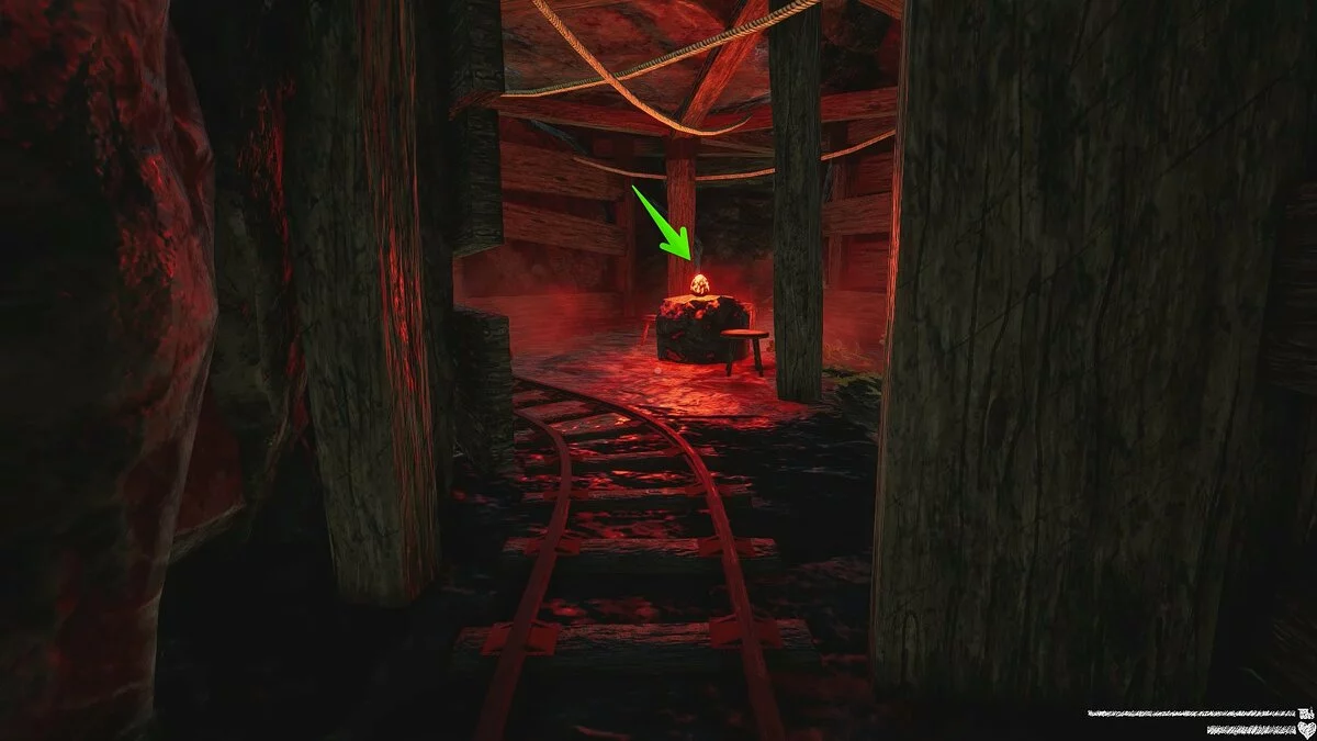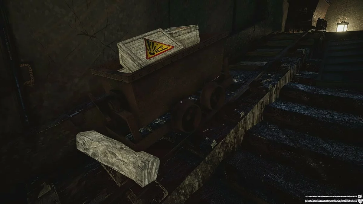 Внутри взаимодействуйте с деревянным брусом, который удерживает вагонетку, и бегите к выходу — взрыв будет сильным. Заберите ракеты.