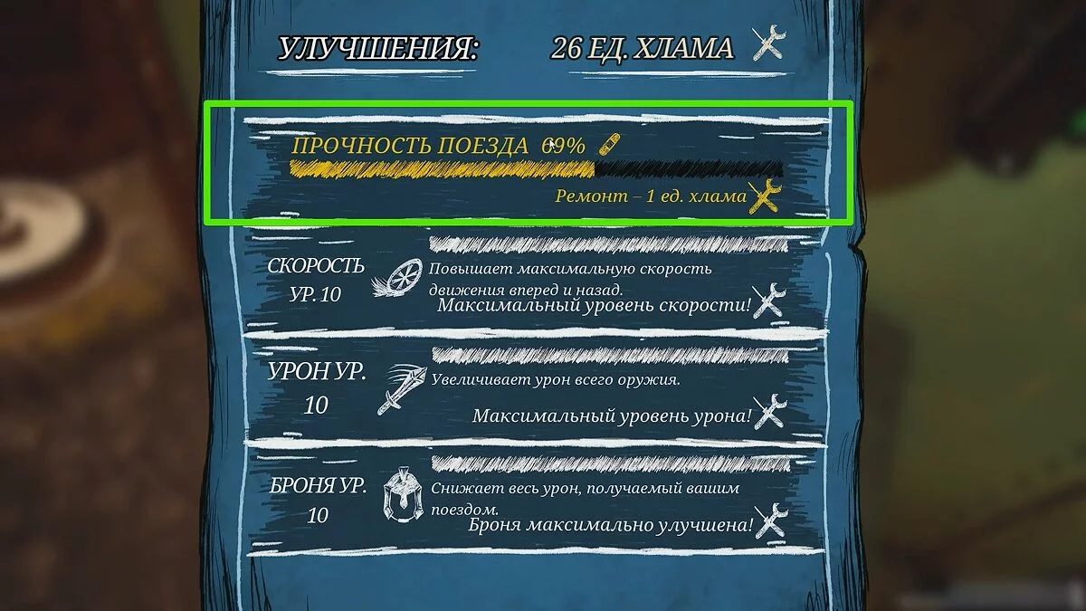 Накопите около 30 единиц хлама — он понадобится, чтобы чинить поезд во время сражения.