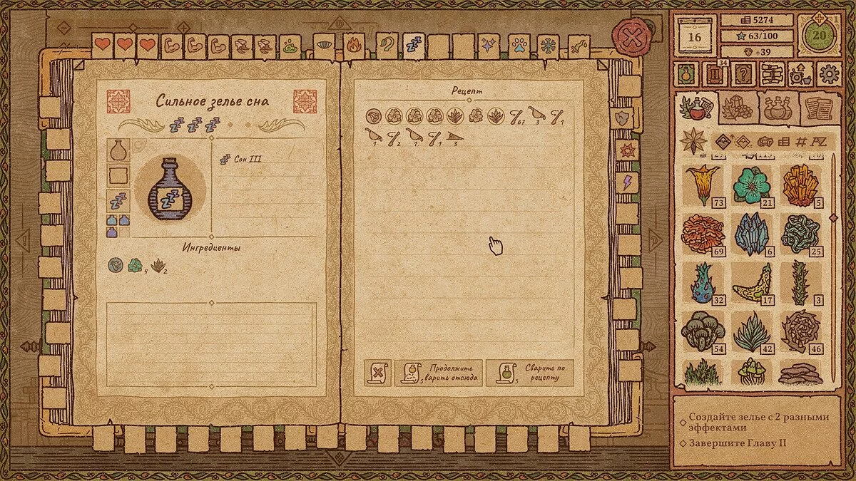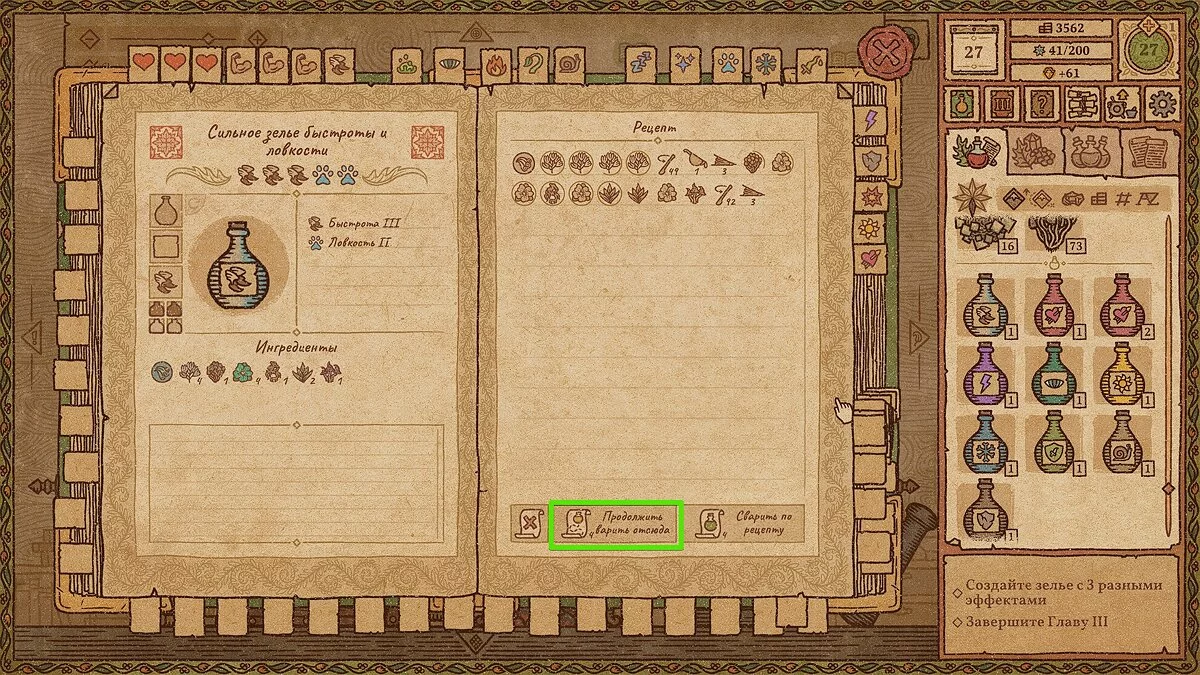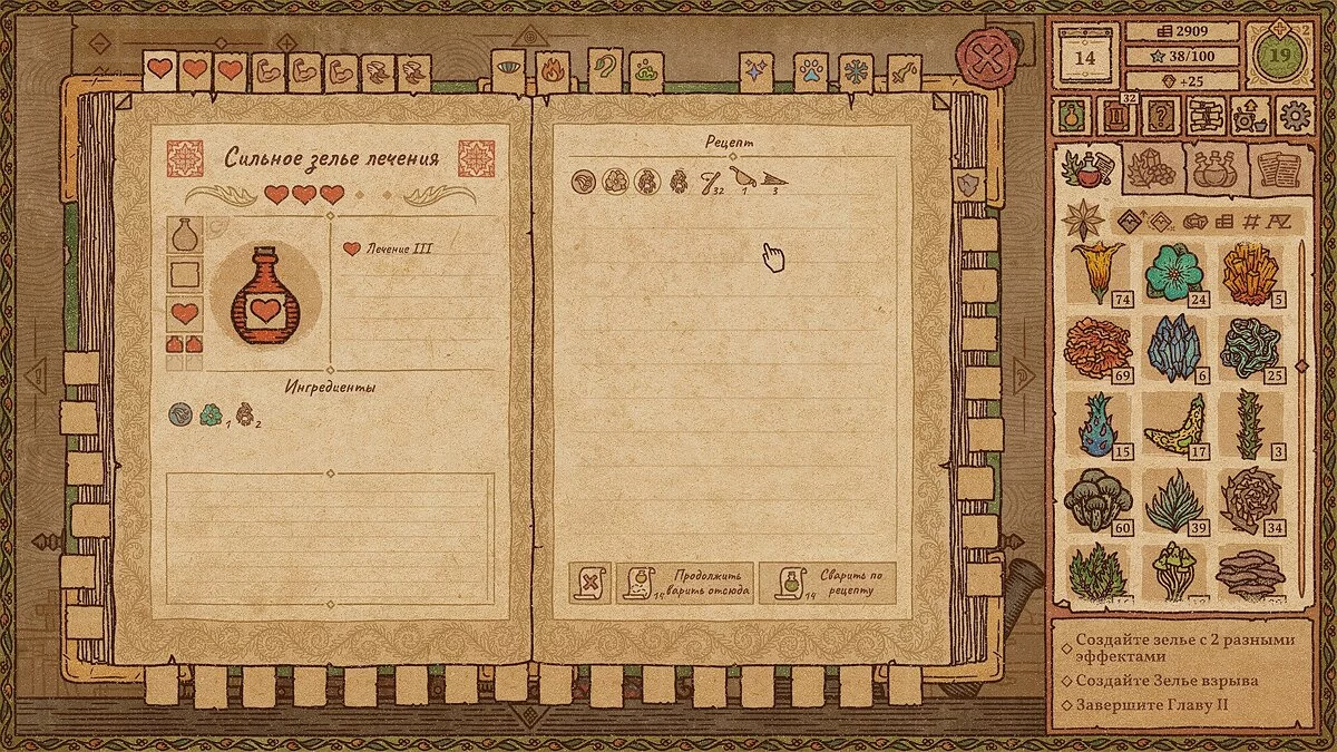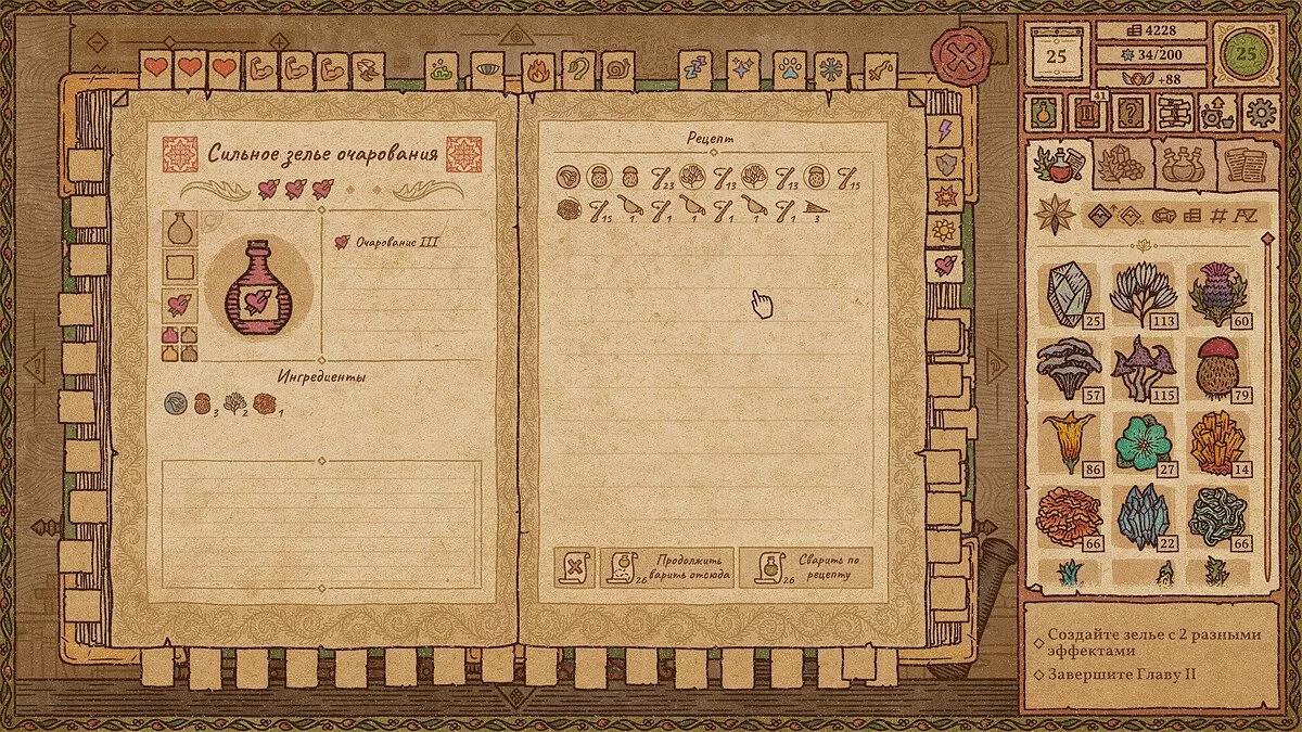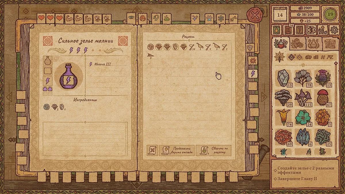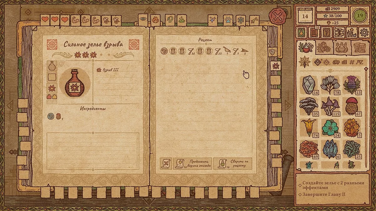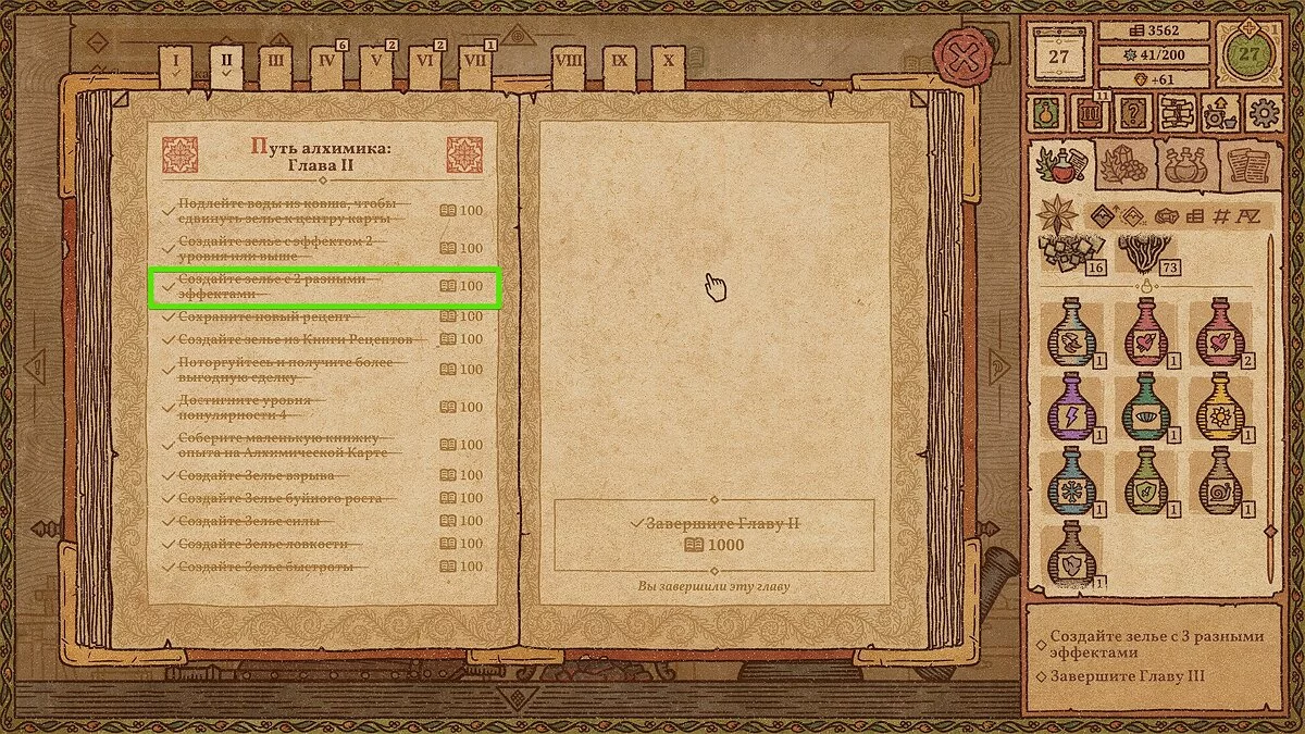 По мере прохождения игры вам нужно завершать различные задания в книге алхимика. Например, во второй главе вам необходимо создать зелье с двумя разными эффектами. Но как это сделать?