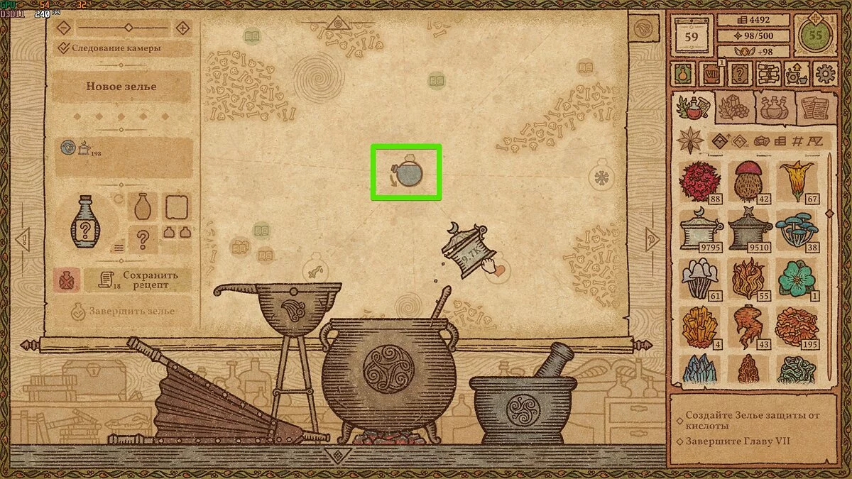 Стоит отметить, что на карте зелий масляной основы передвигаться гораздо сложнее — склянка как будто скользит по карте.